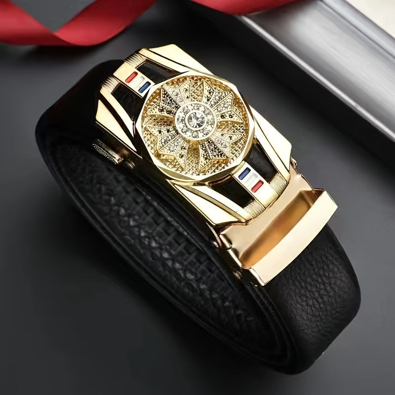 The Belt For Men With Automatic Buckle Is Of High Quality, Suitable For Young And Middle-aged Businessmen, Rotating Belt For Casual And Versatile Wear.