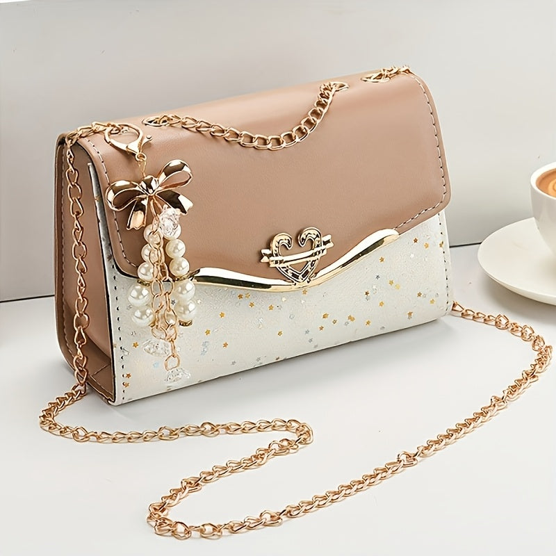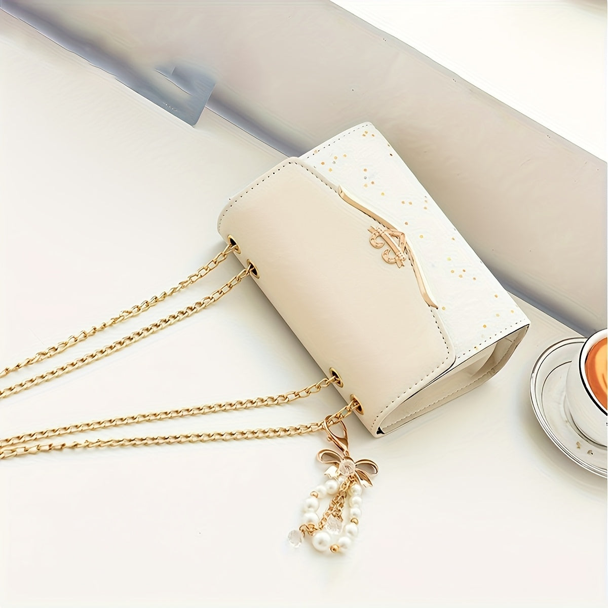 This bag is available in khaki, beige, black, and blue colors. A stylish bohemian beige PU crossbody bag with tassel charm - urban-style flap shoulder bag featuring a metal chain strap, lightweight and portable, ideal for sho