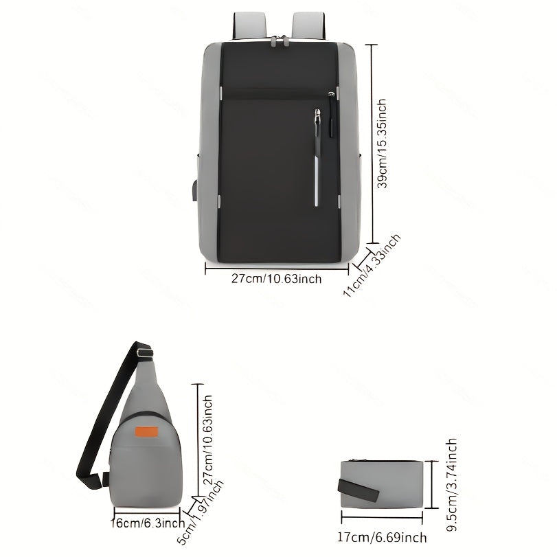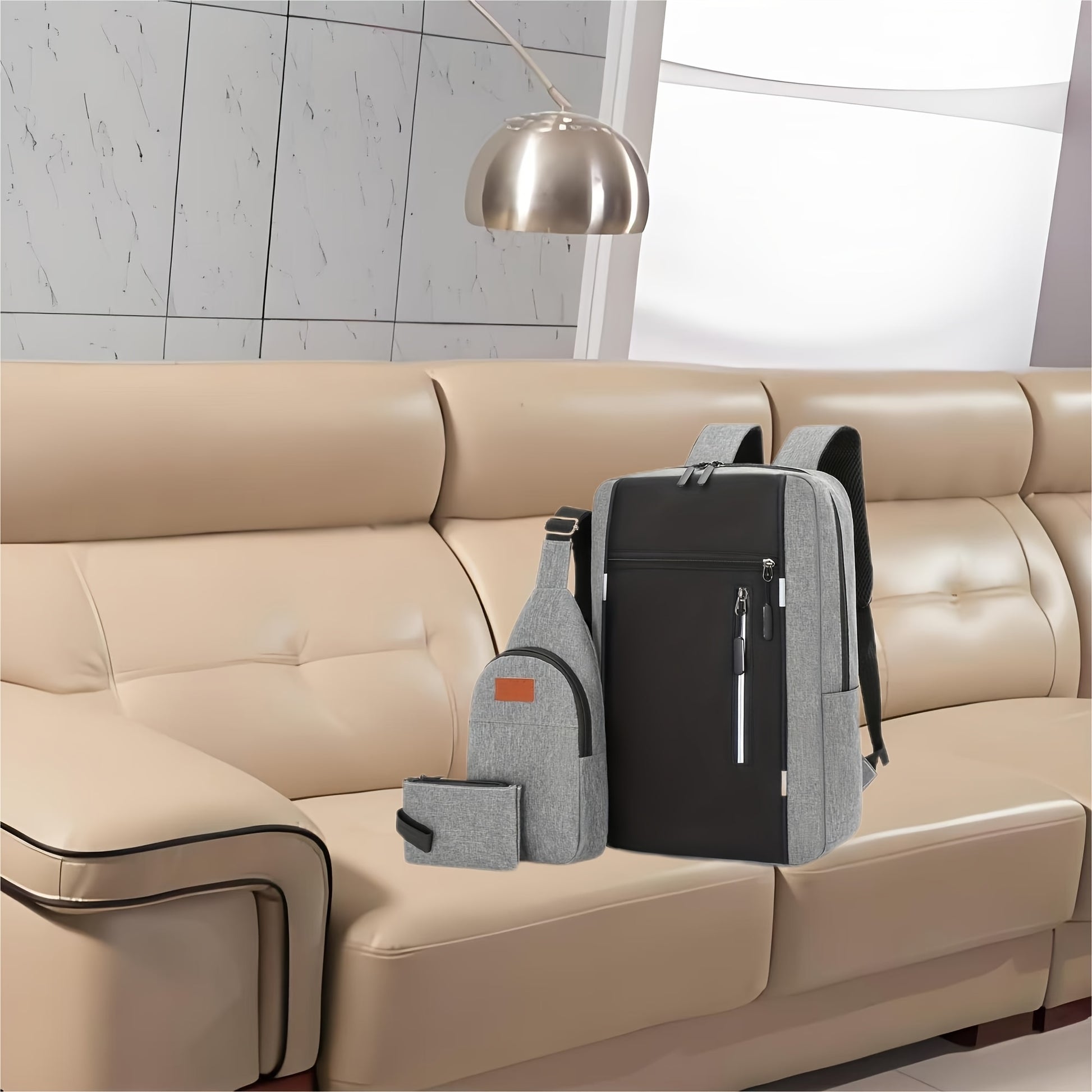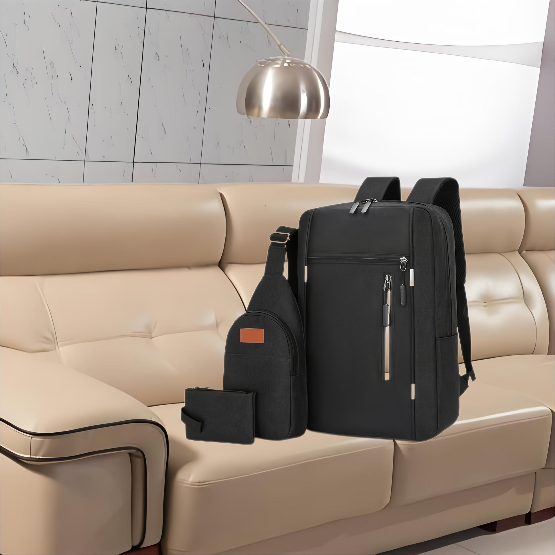 Three-Piece Set Men's Backpack, Includes Shoulder Bag and Coin Purse, Suitable for Back-to-School, Travel, Business, Casual Use with Large Capacity