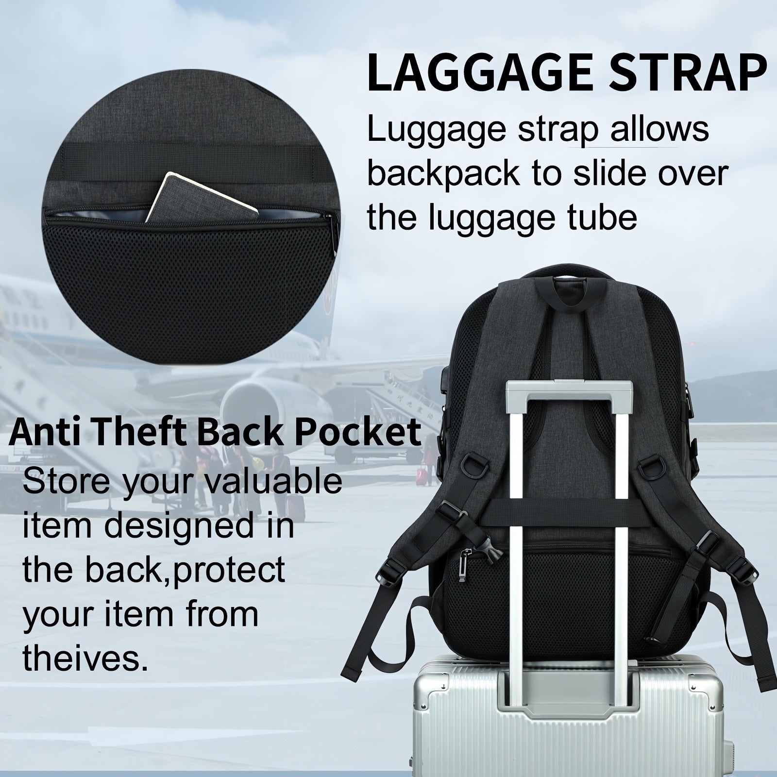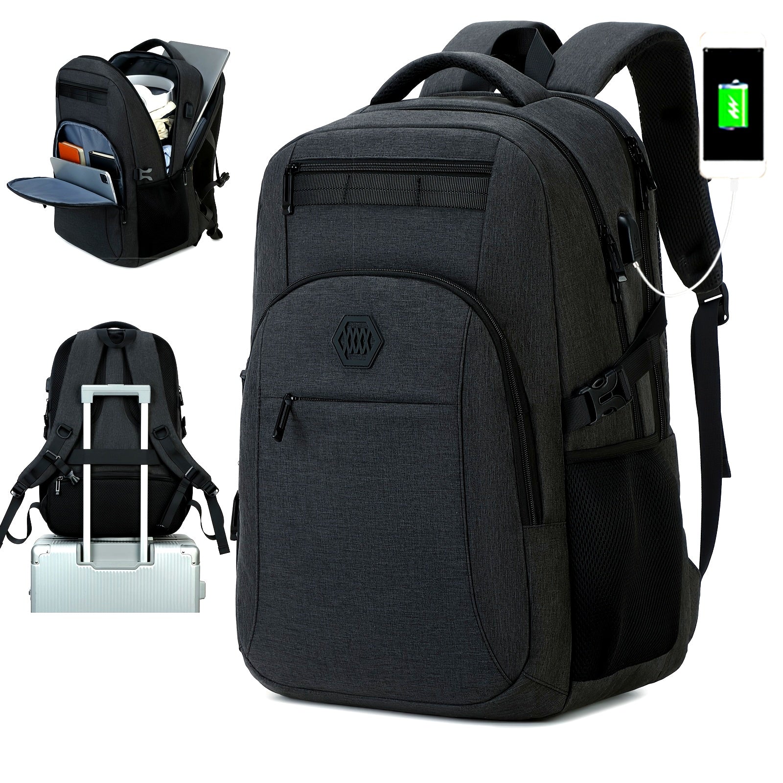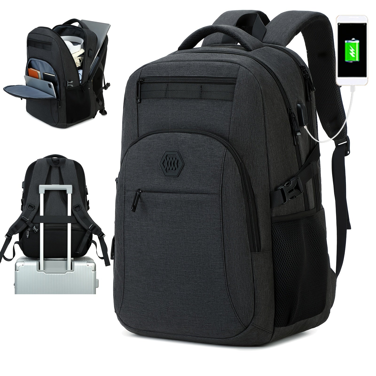 Travel Laptop Backpack, Business Slim Durable Laptop Backpack With USB Charging Port And Trolley Cover, Male And Female College High School Laptop Bag For 15.6 Inch Laptop