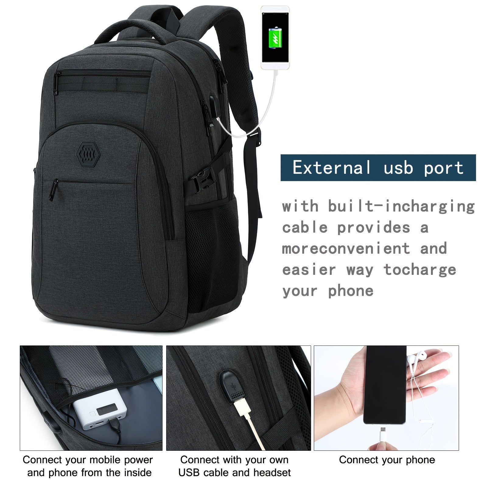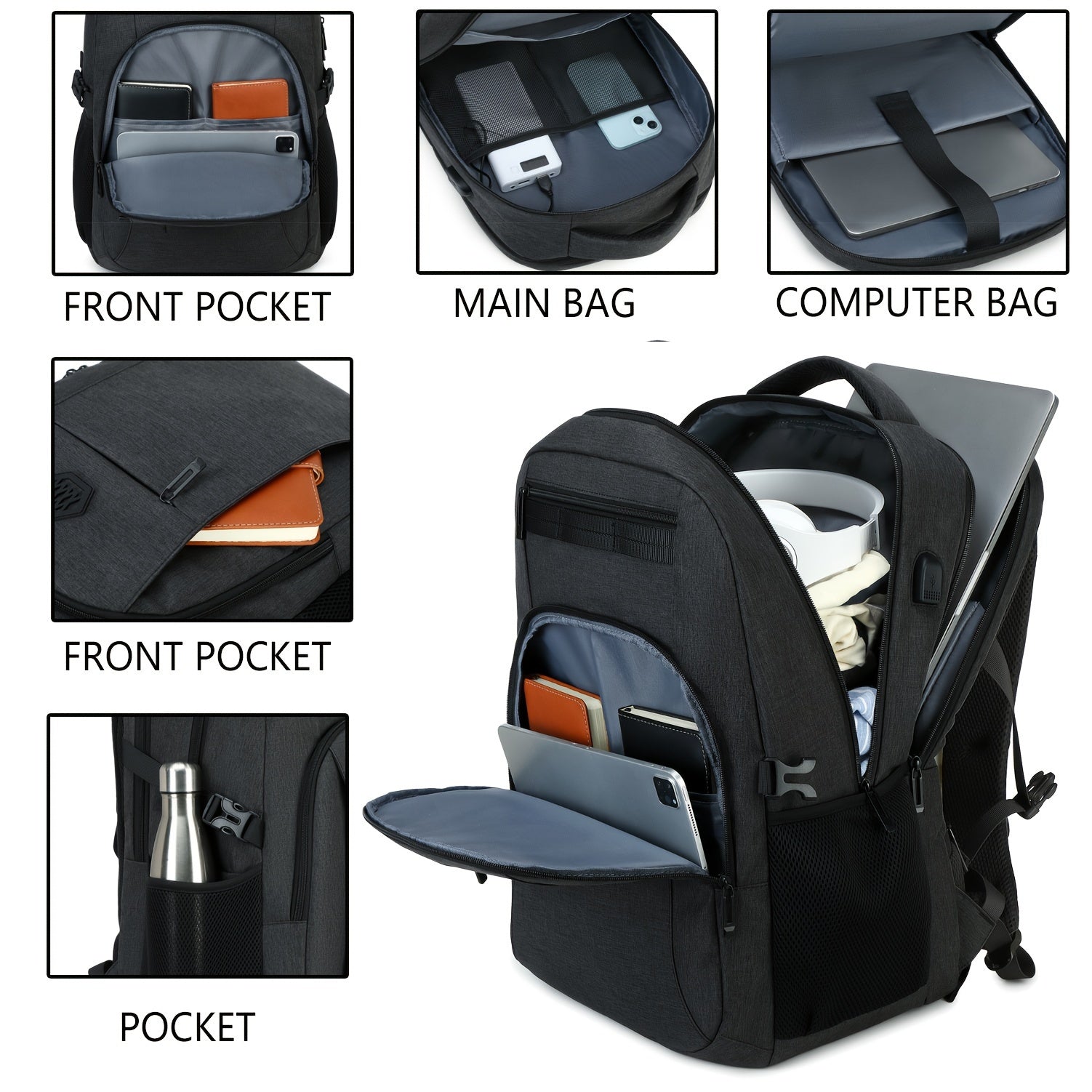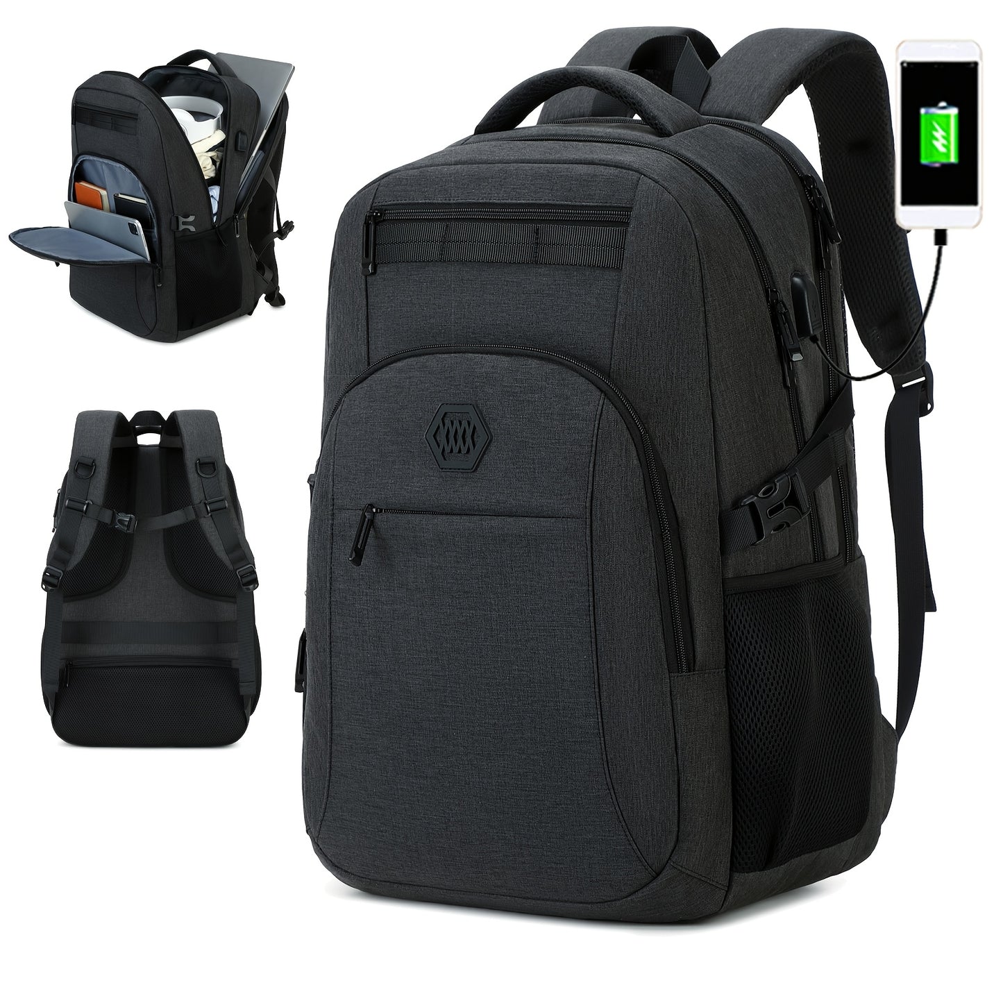 Travel Laptop Backpack, Business Slim Durable Laptop Backpack With USB Charging Port And Trolley Cover, Male And Female College High School Laptop Bag For 15.6 Inch Laptop