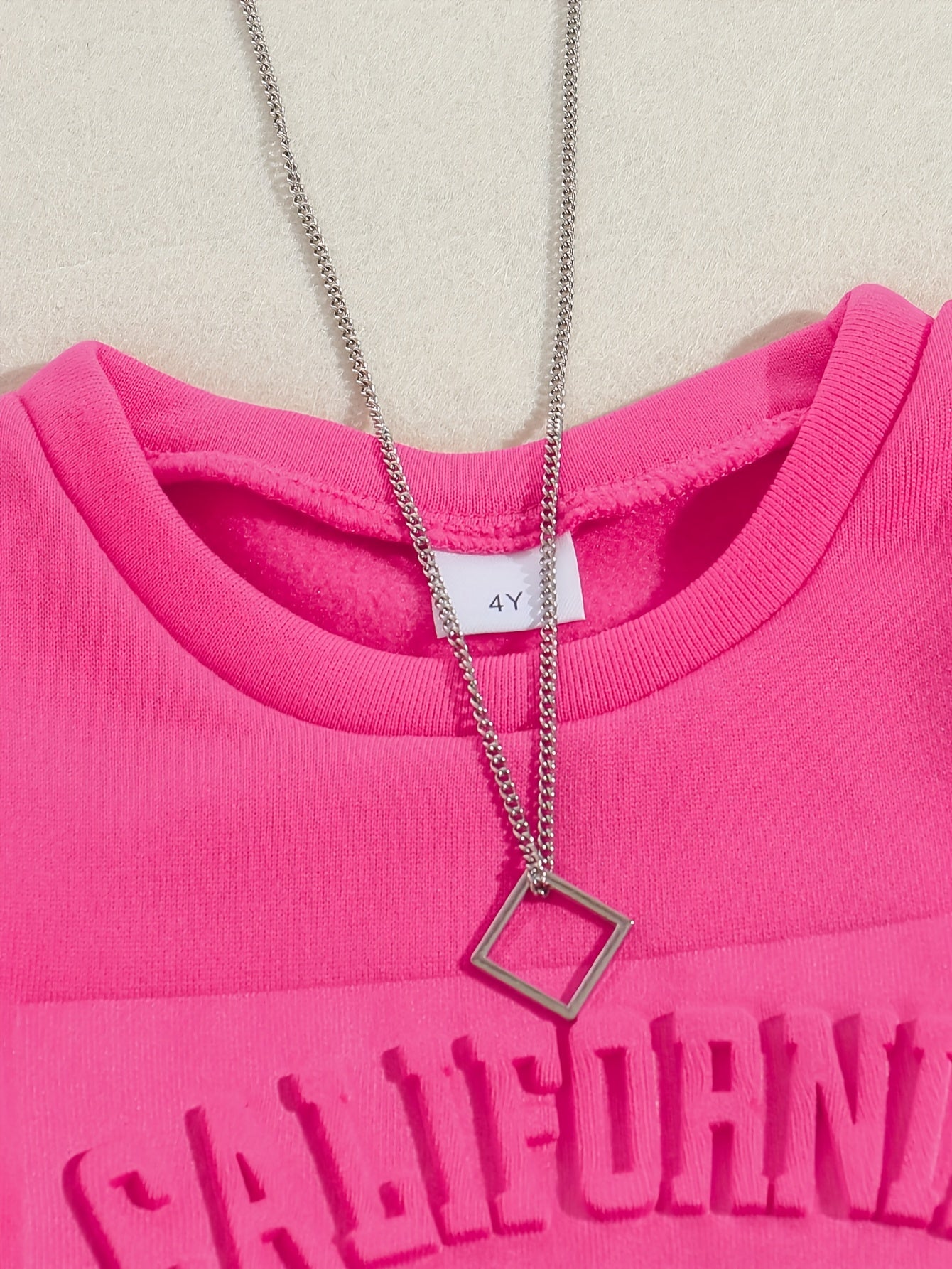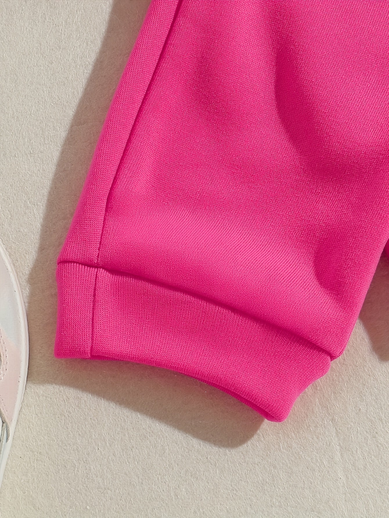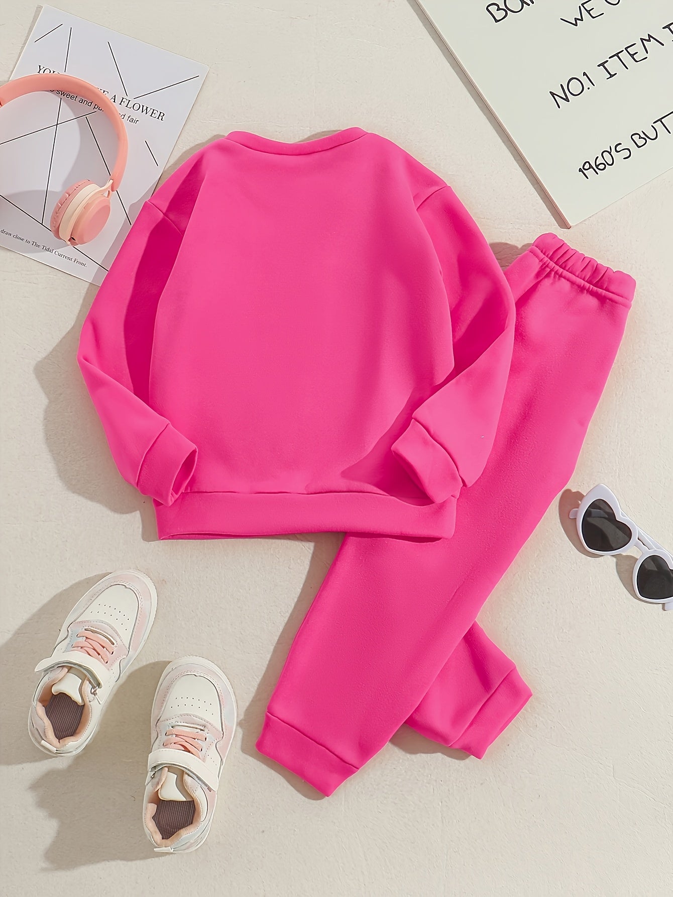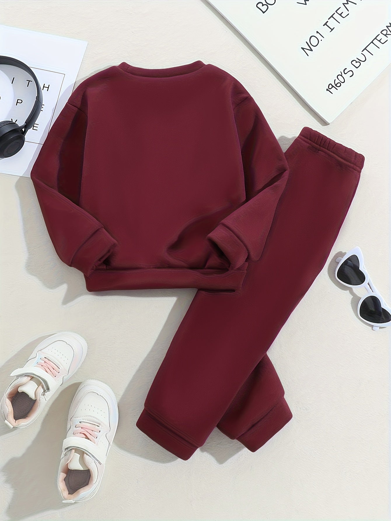Tween Girls' Autumn/Winter Letter Embossed Warm Lined Sweatshirt and Joggers, Perfect for Outdoor