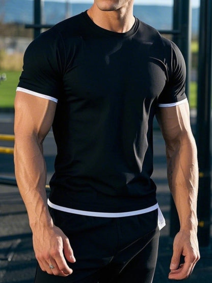 Twist Cool One-Piece Fake Two-Piece Short Sleeve T-Shirt Spring Summer Trendy Streetwear Men's Top