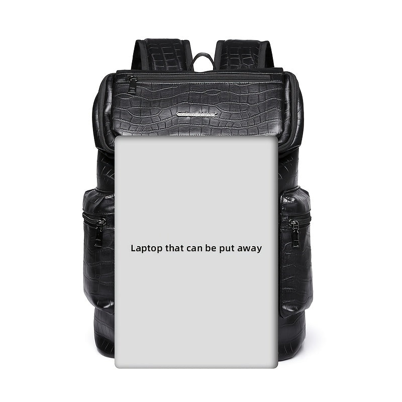 Unisex Backpack with Crocodile Texture, Large Capacity, Anti-Theft, Multi-Compartment, Fits 14-inch Laptop, Casual Travel Business Commute, Minimalist Style, No Battery - Black