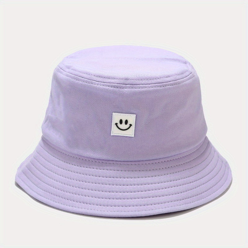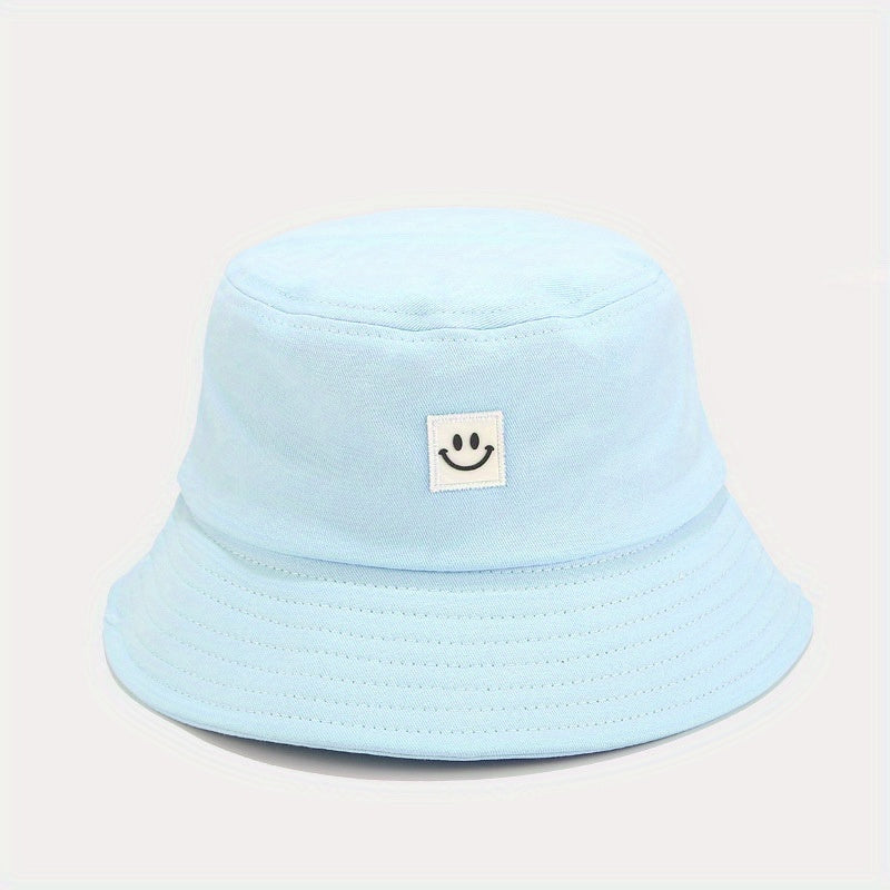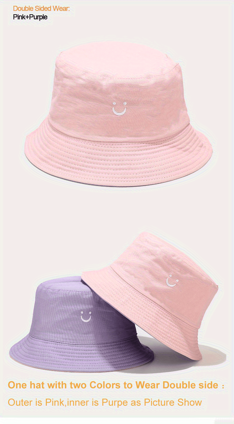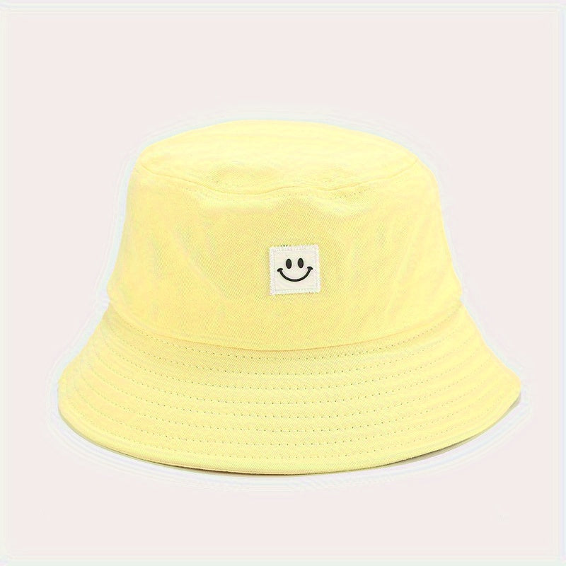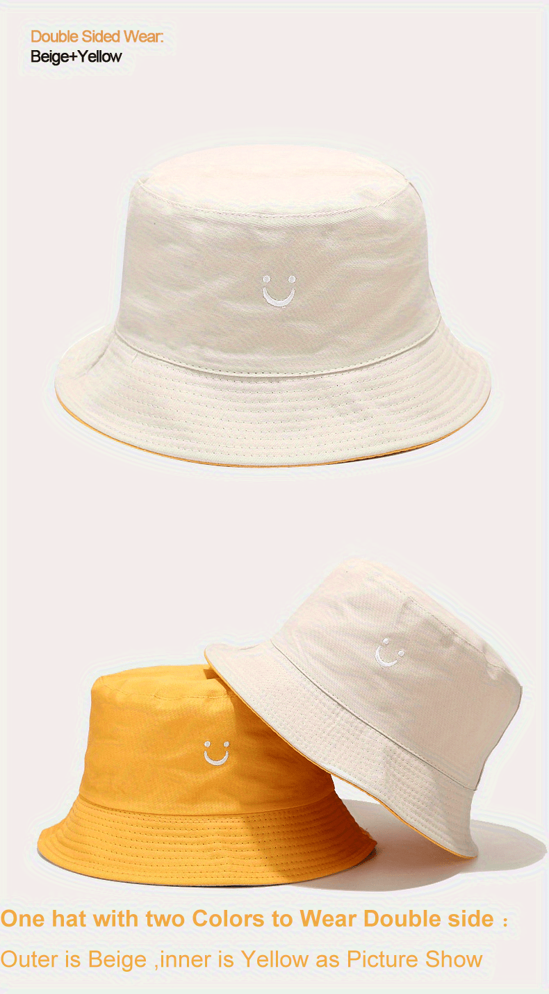 Unisex Black & White Fisherman Hat with joyful Face Embroidery - Double-Sided, Sporty Polyester Bucket Hat for Men and Women, Ideal for Outdoor Activities, Outdoor Hat | joyful Face Embroidery | Durable Headgear
