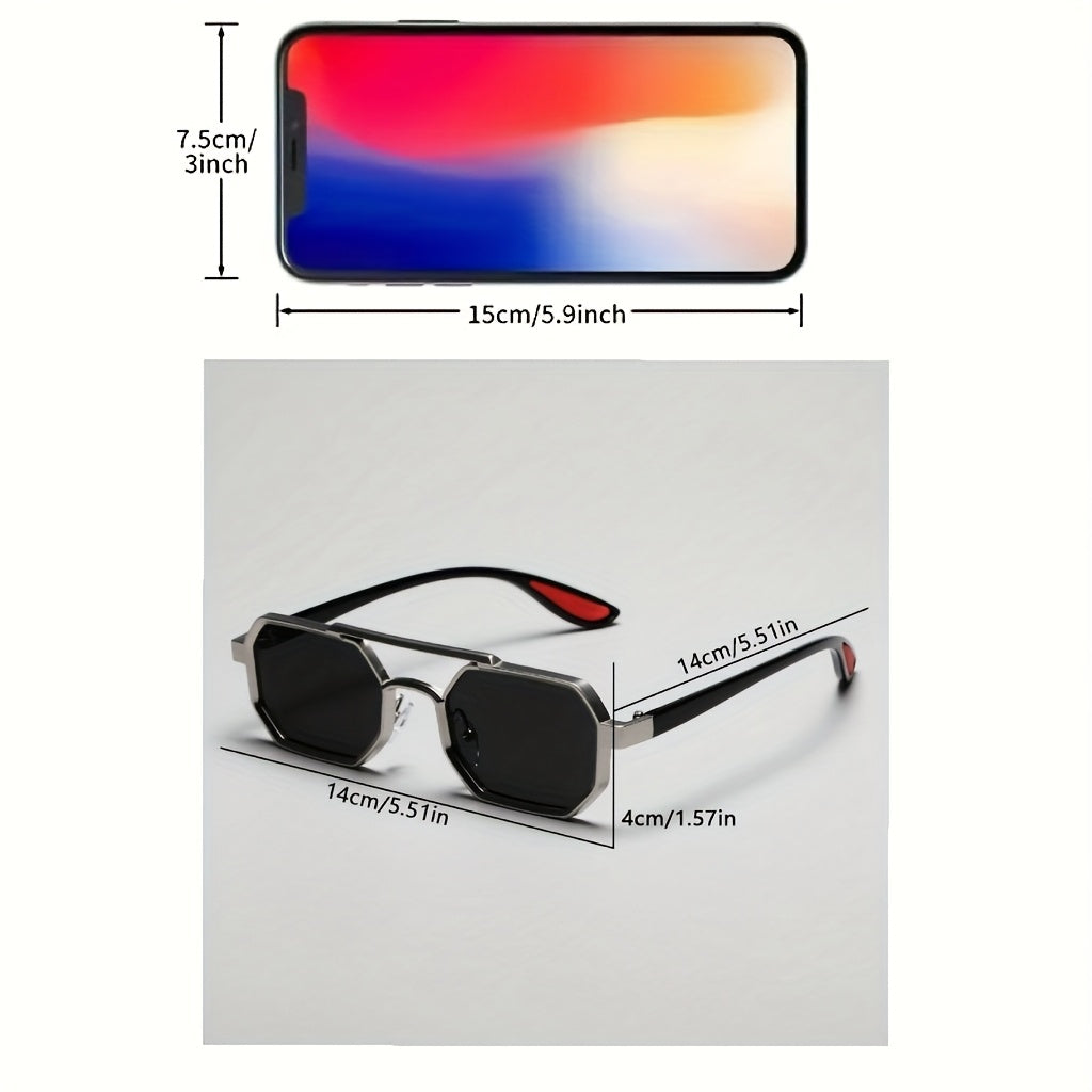 Unisex Geometric Metal Frame Fashion Glasses - Double Beam Design Decorative Eyewear for Everyday Casual Wear, Lightweight & Durable, Black Lenses, Stylish Accessory