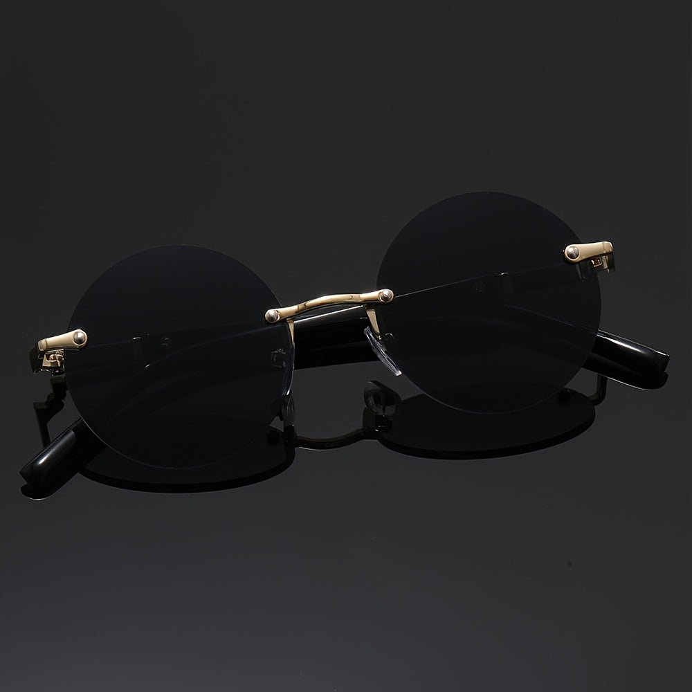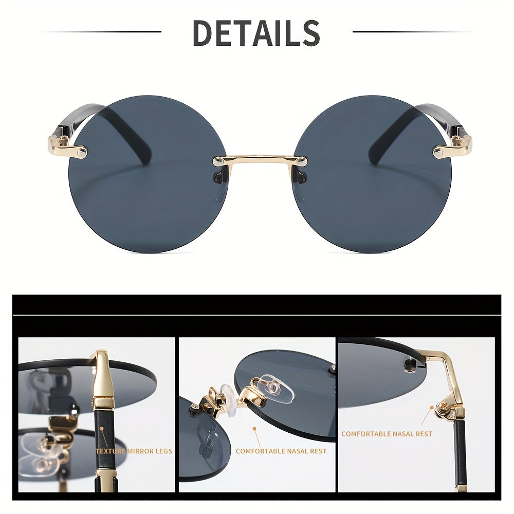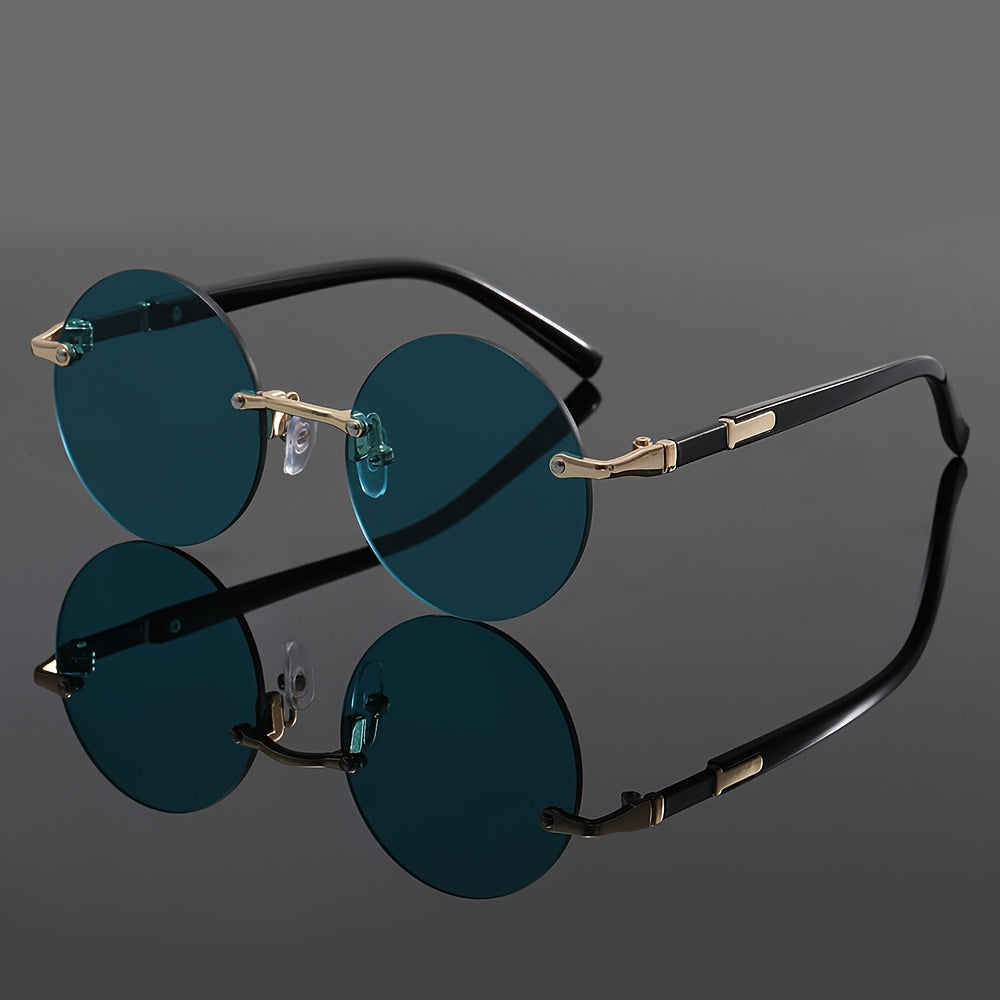 Unisex Round Frameless Glasses with Blue-Tinted Polycarbonate Lenses & Golden Accents - Lightweight Durable PC Frame for Casual, Party, Daily Wear - Perfect Graduation, Back-to-School, Christmas Gift