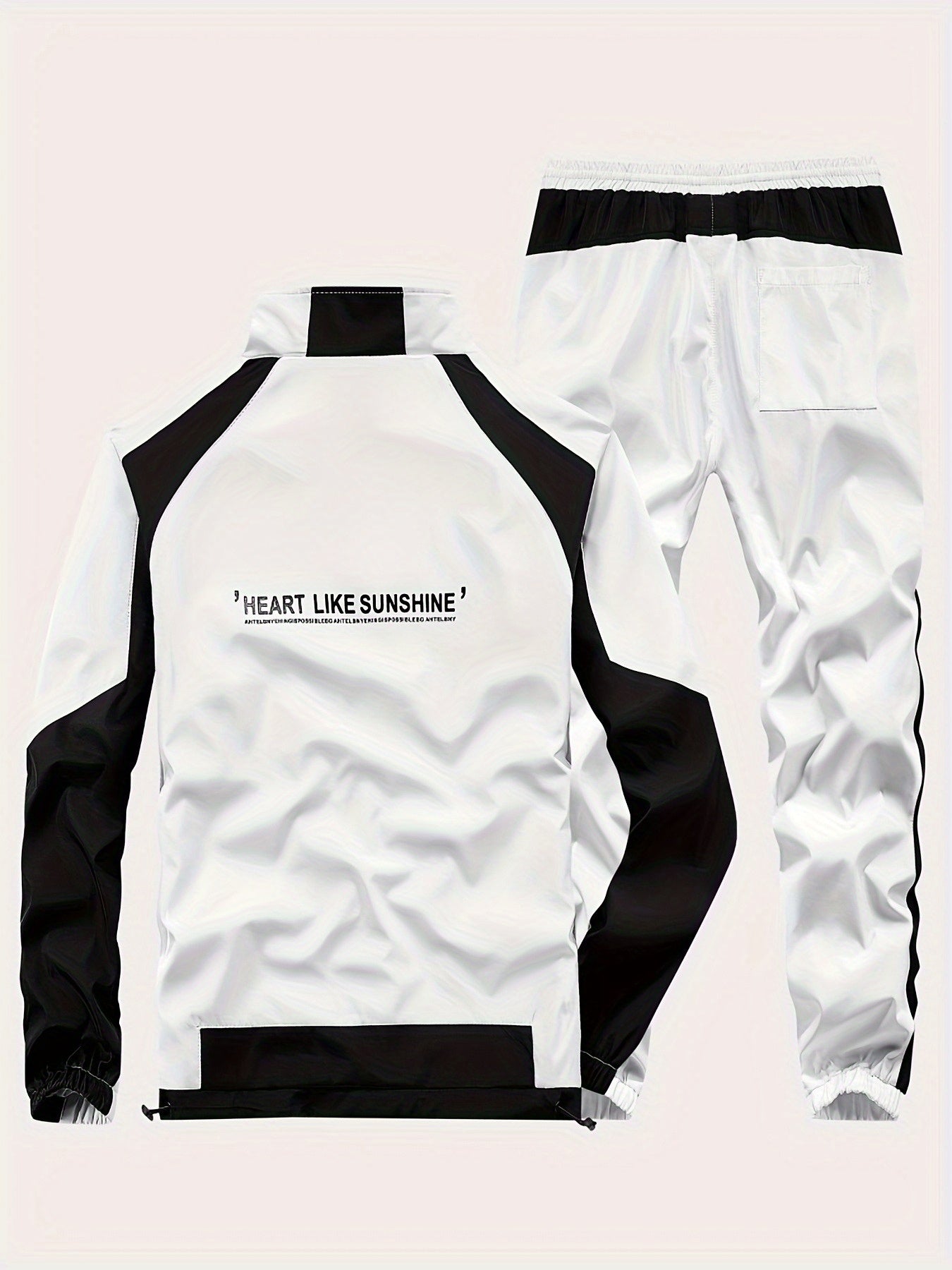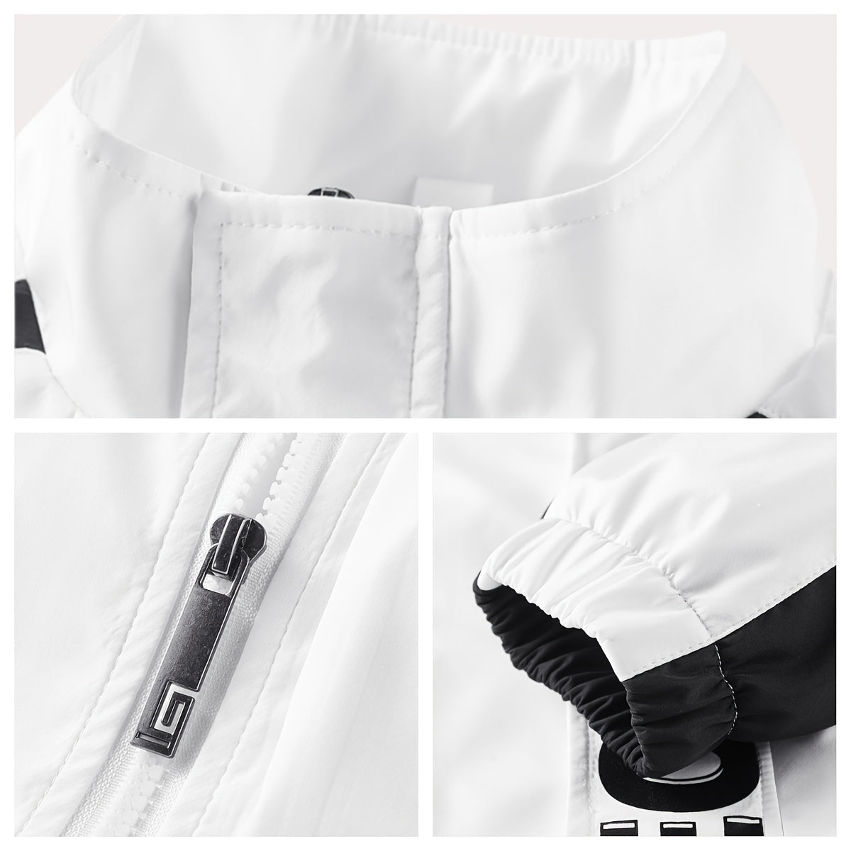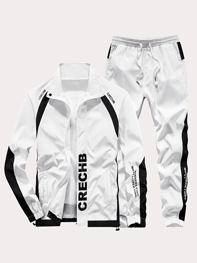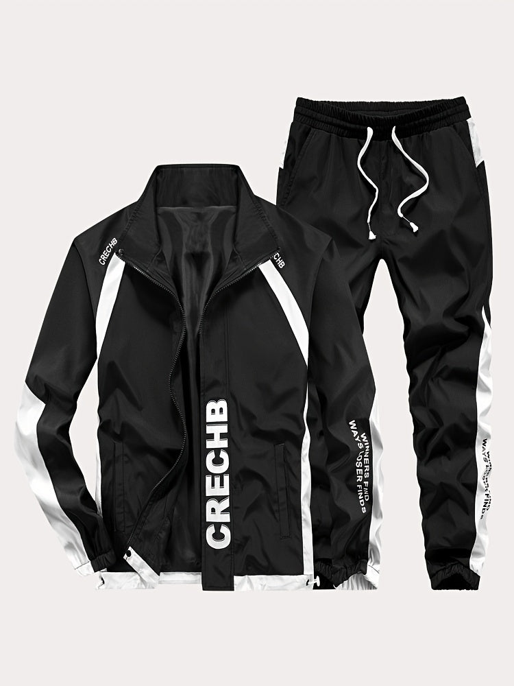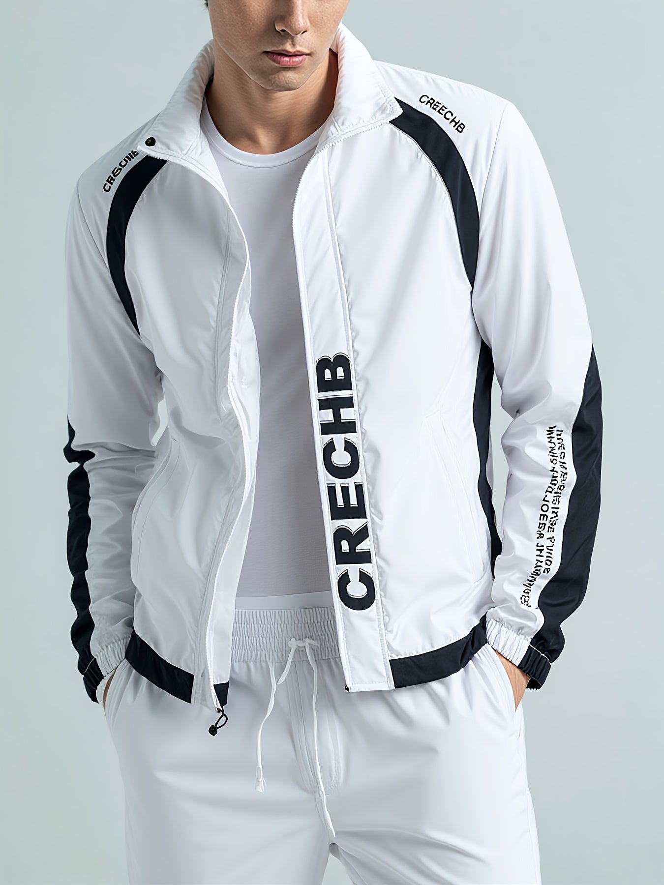 Unisex Sportswear Set for Spring And Autumn, Featuring a Zip-Up Jacket with a Stand Collar And Striped Long Pants in Black And White, a Stylish Outfit That Makes a Great Gift, Sweat-Resistant, Hand Wash Only, Workout Accessor