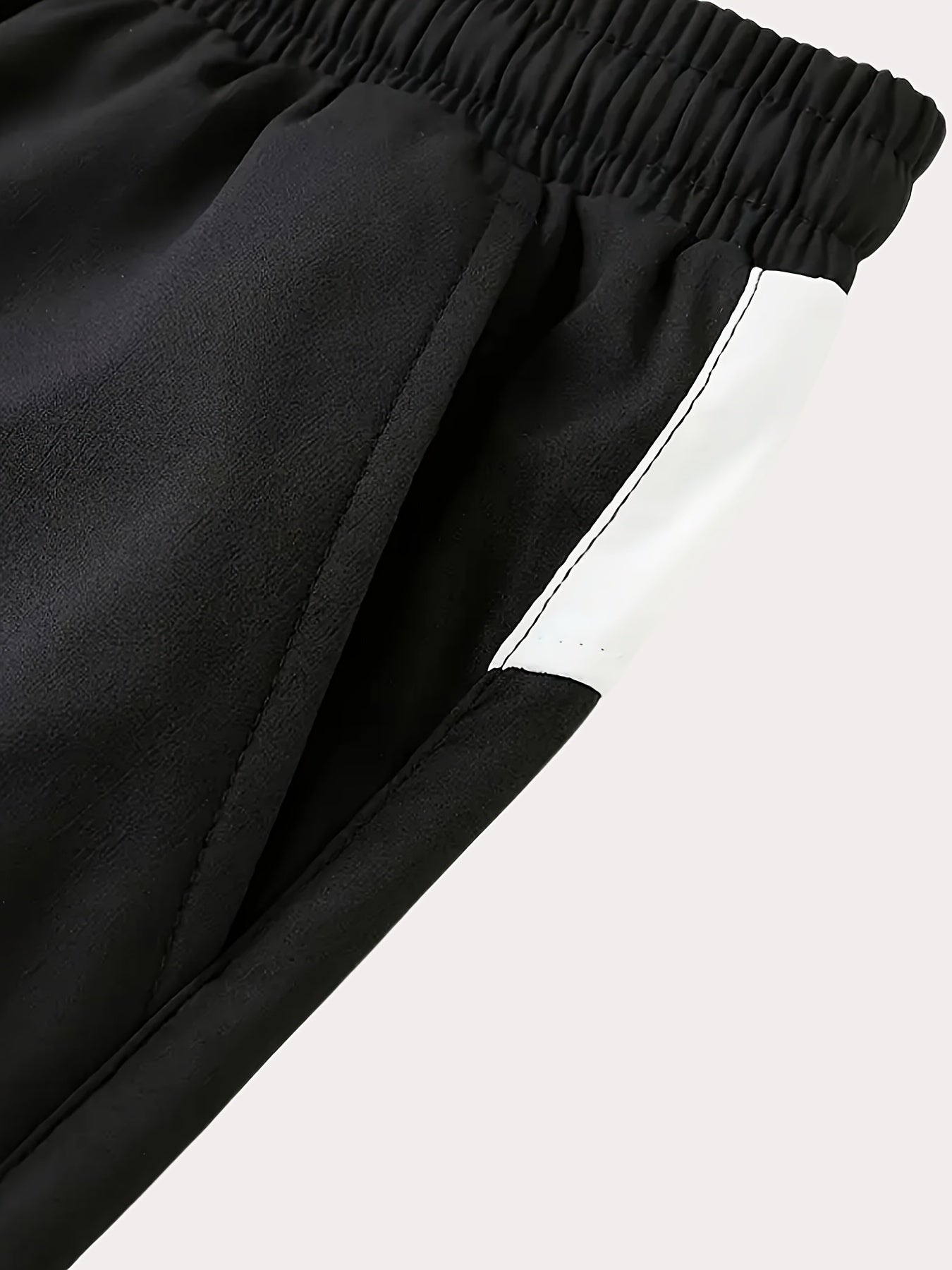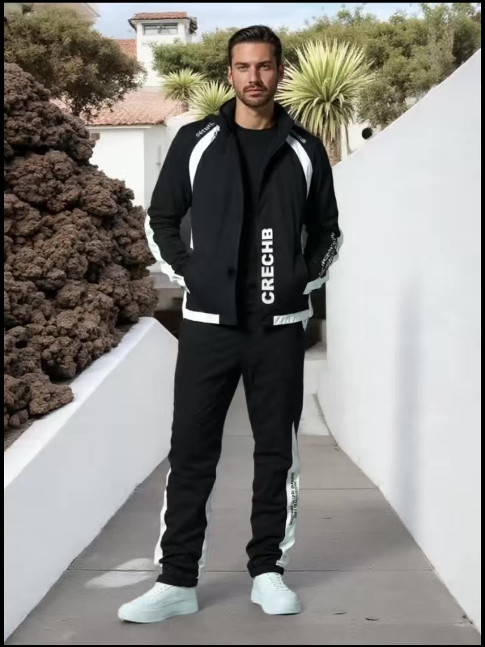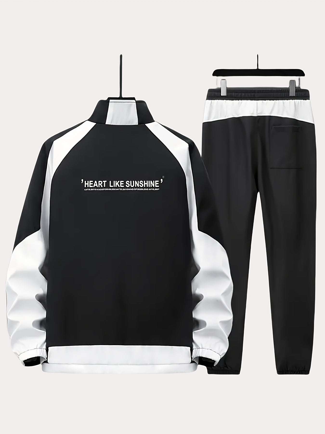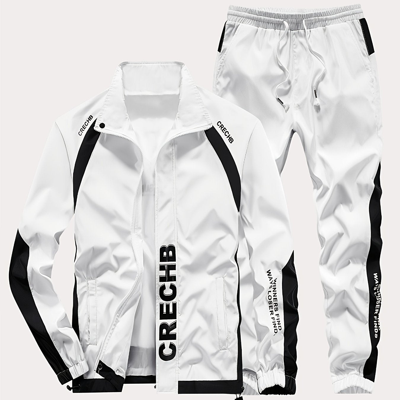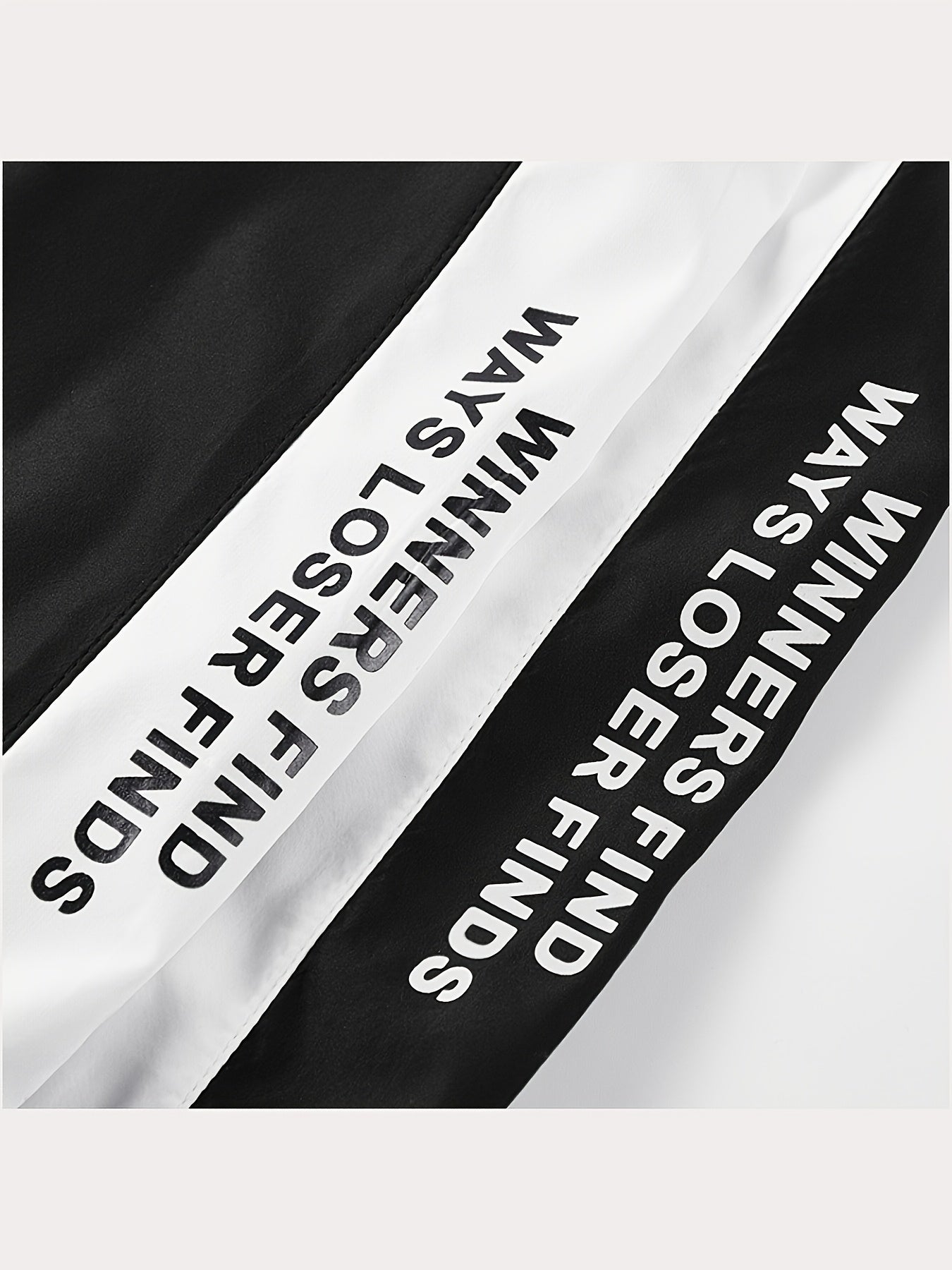 Unisex Sportswear Set for Spring And Autumn, Featuring a Zip-Up Jacket with a Stand Collar And Striped Long Pants in Black And White, a Stylish Outfit That Makes a Great Gift, Sweat-Resistant, Hand Wash Only, Workout Accessor