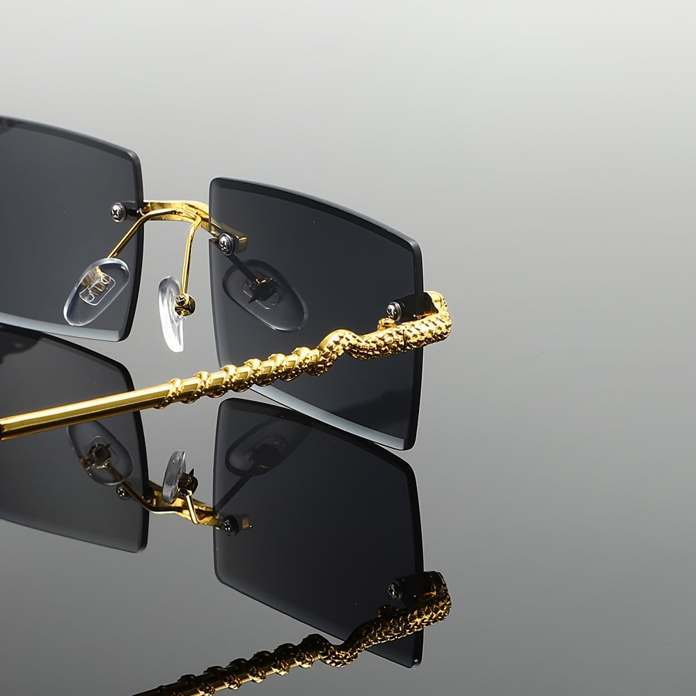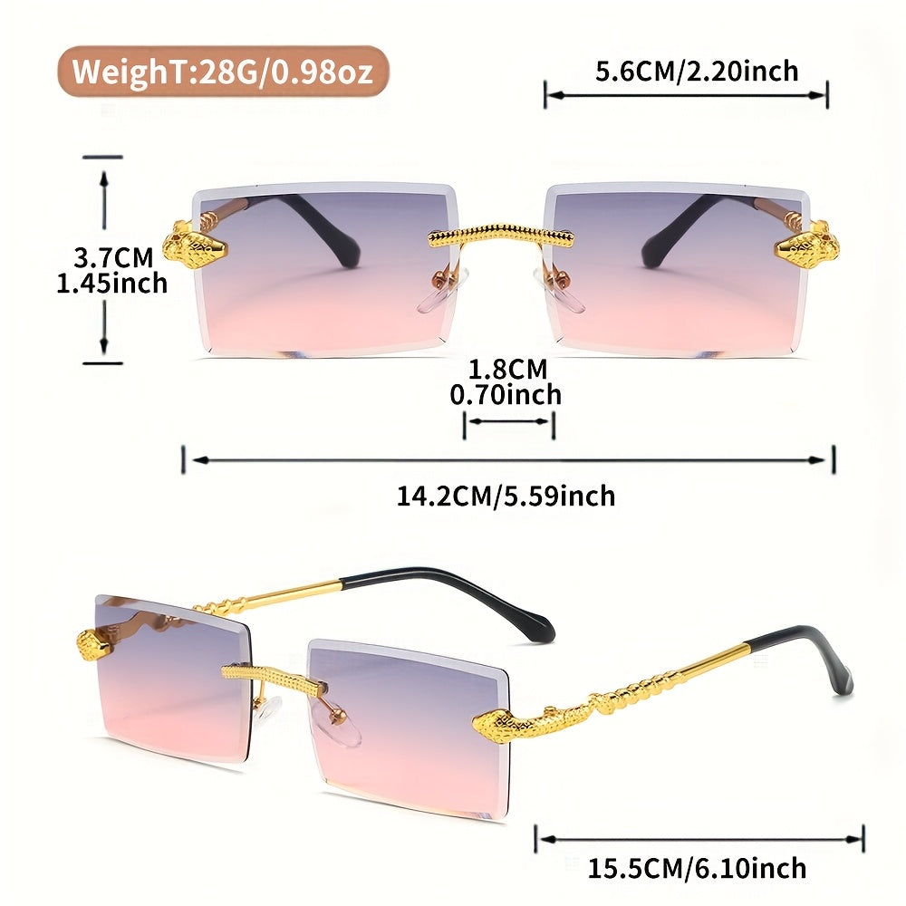 Unisex Square Frameless Fashion Glasses with Snake-Light Beige Metal Temples & Gradient Pink Tinted Lenses - Trendy Fashion Accessories for Street Style, Casual & Formal Outfits, Stylish Glasses, Decorative Eyewear, Goldtoned
