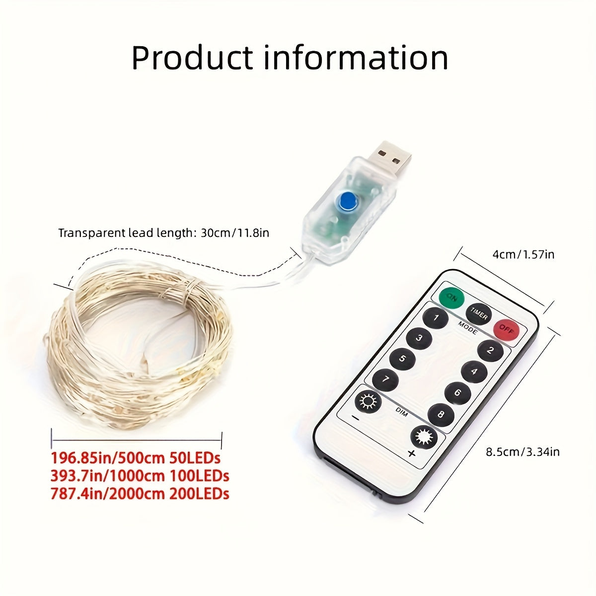 USB-Powered LED Fairy Lights with Remote Control - Copper Silvery Wire Garland for Weddings, Parties, Holidays, Birthdays, Halloween & Christmas Decor