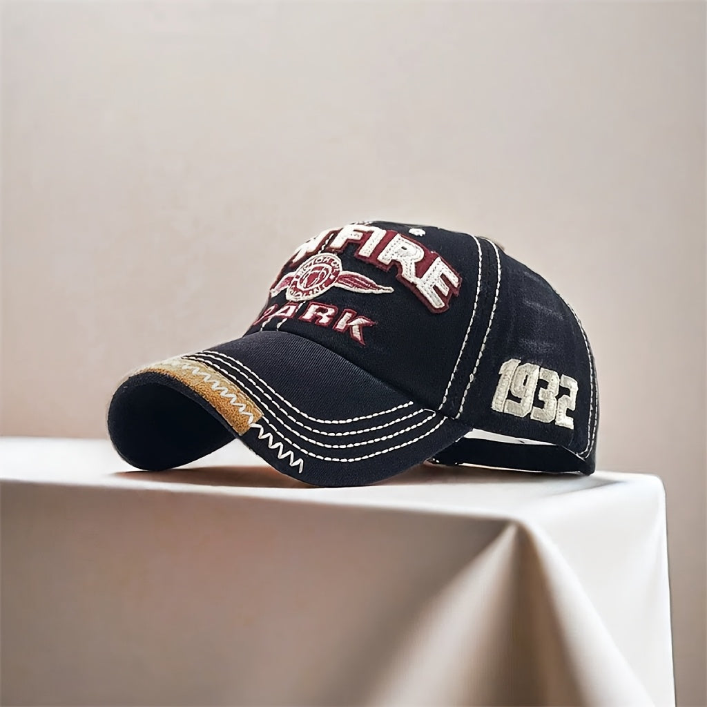Vintage 1932 Firefighter Baseball Cap - Red & Yellow, Adjustable Fit, Moisture-Wicking Polyester, Hand-Washable Outdoor Hat for Men and Women, Adjustable Baseball Cap | Logo Cap | Quality Craftsmanship, Firefighter Gift