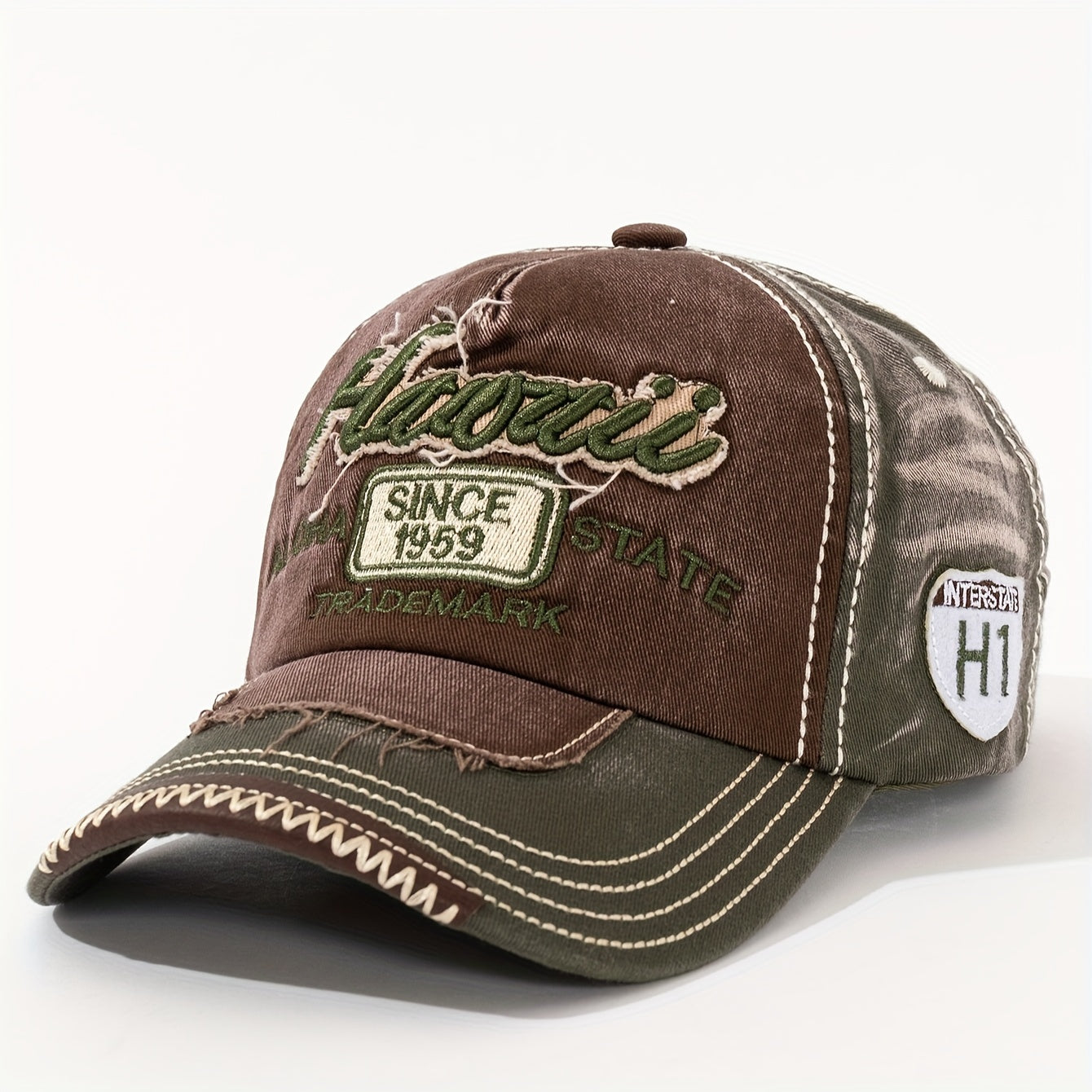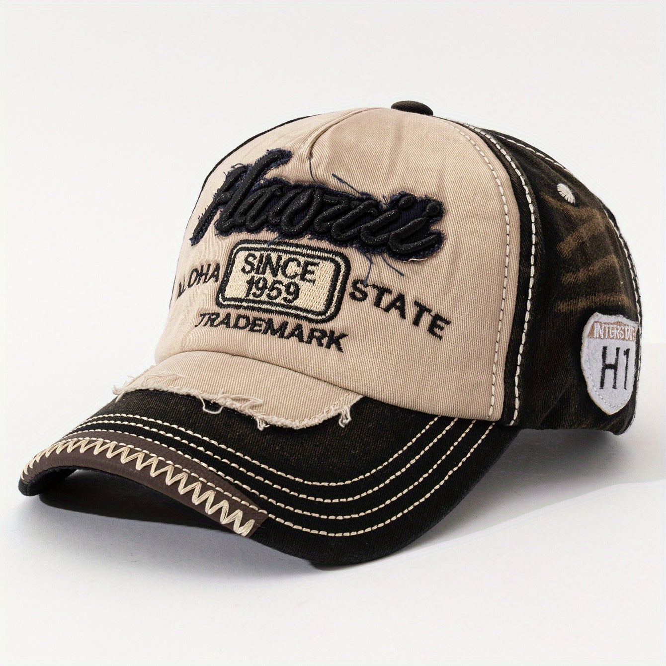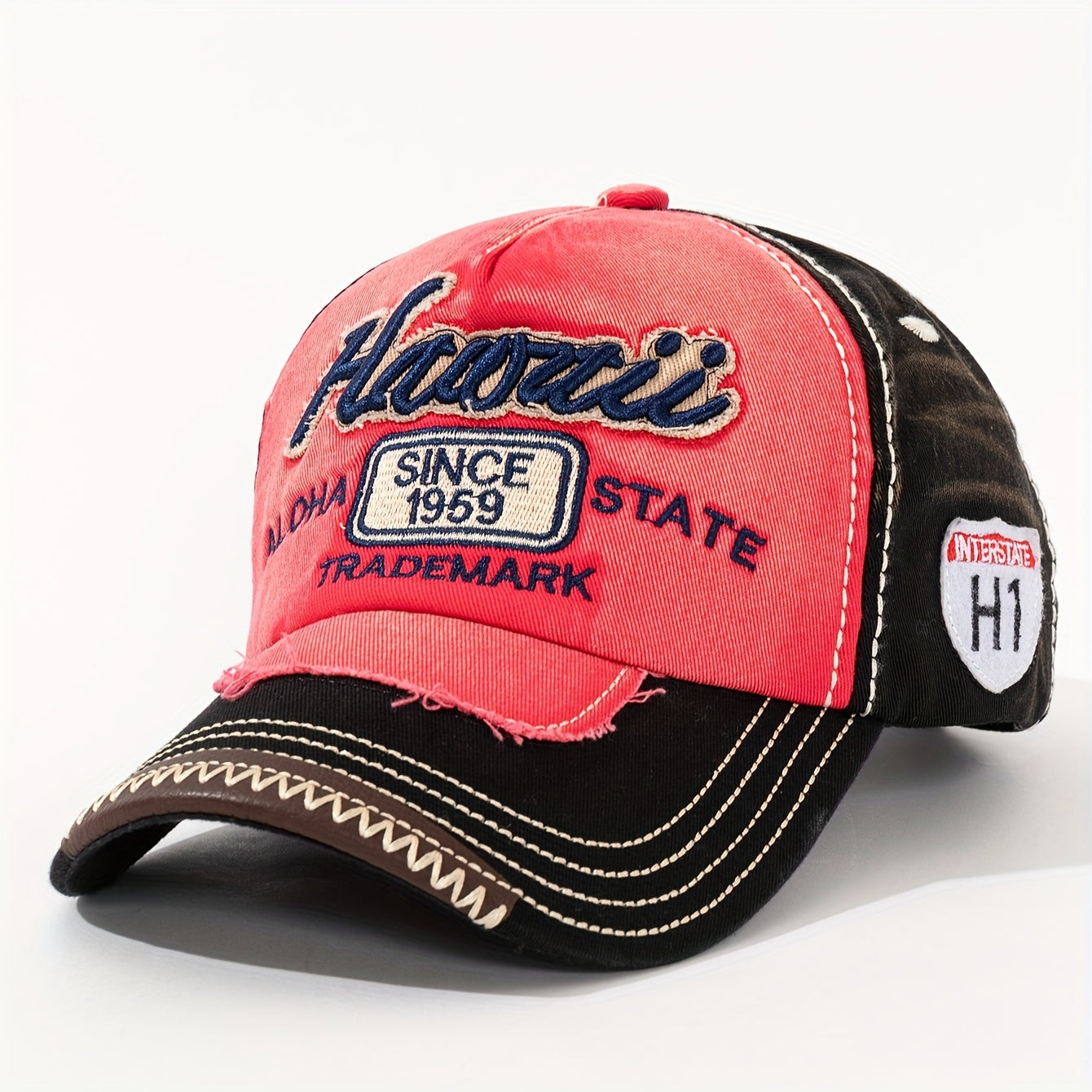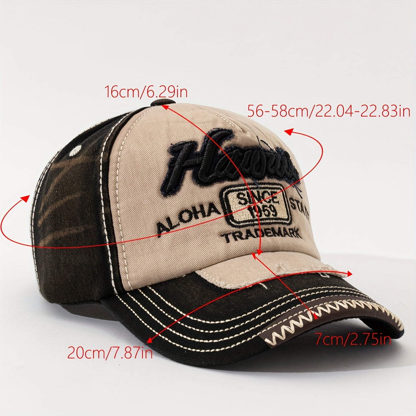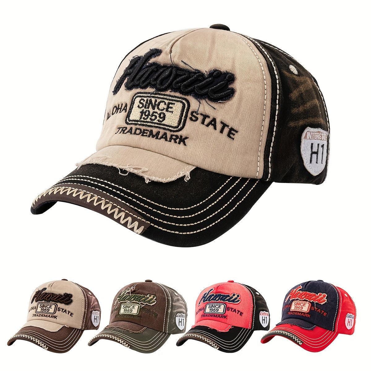 Vintage "Hawaii" Embroidered Baseball Cap - Distressed Two-Tone Design, Breathable Cotton, Adjustable Fit, Casual & Travel Hat (Beige/Black, Brown/Red, Red/White)
