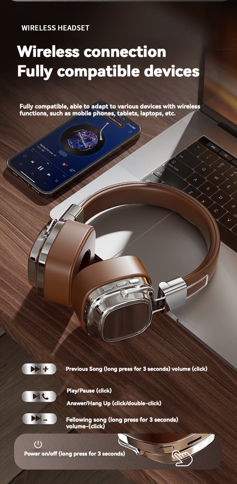 Vintage-Inspired Over-Ear Wireless Headset With Wireless 5.3 Chip - No Lag Gaming, Hi-Fi Sound & Deep Bass, Long-Lasting 350Mah Battery, Ideal For Music Lovers & Athletes