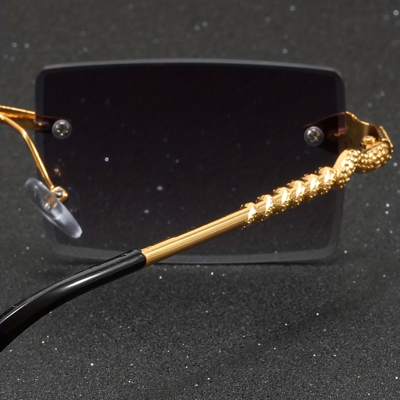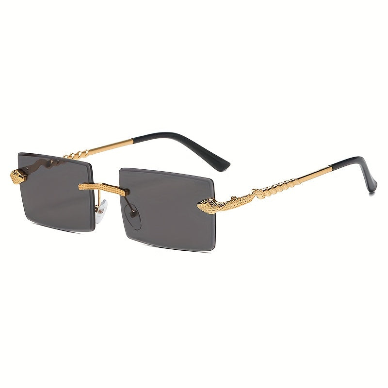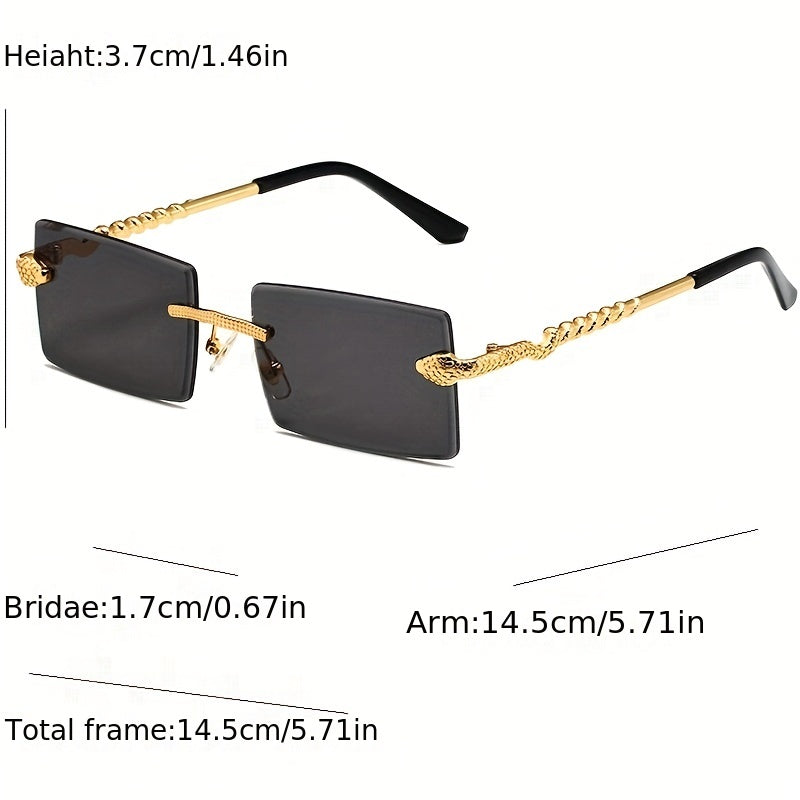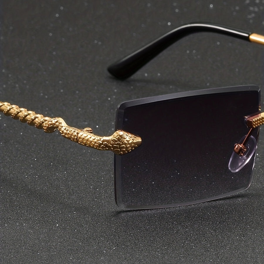 Vintage Style Square Rimless Glasses with Snake Design, Zinc Alloy Frame, Black Lenses, ENSARJOE