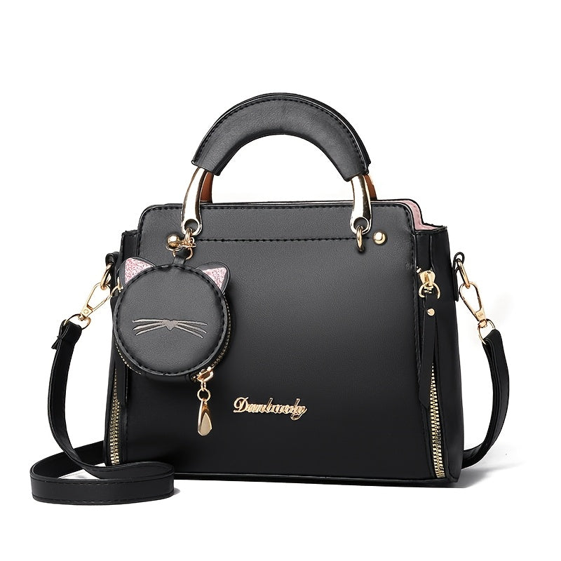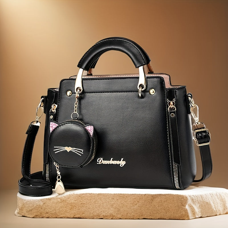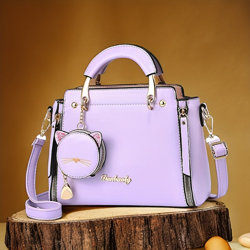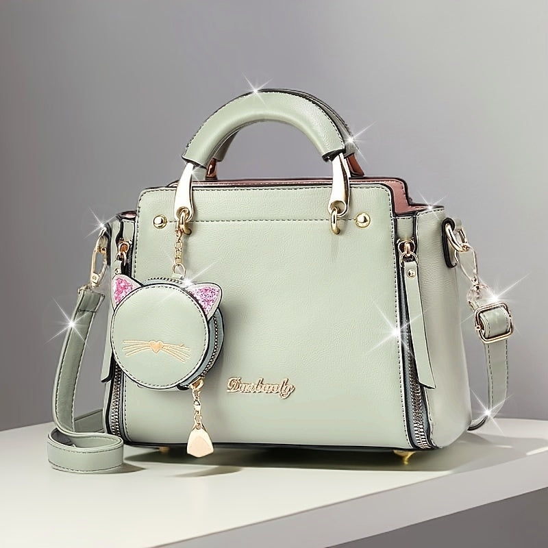 Visually Appealing Light Green Handbag with Adjustable Strap & Cat Charm – Versatile Shoulder Bag for Travel, Shopping, and Gifting, Travel Handbag | Minimalist Design | Polyester Lining, Crossbody Purse