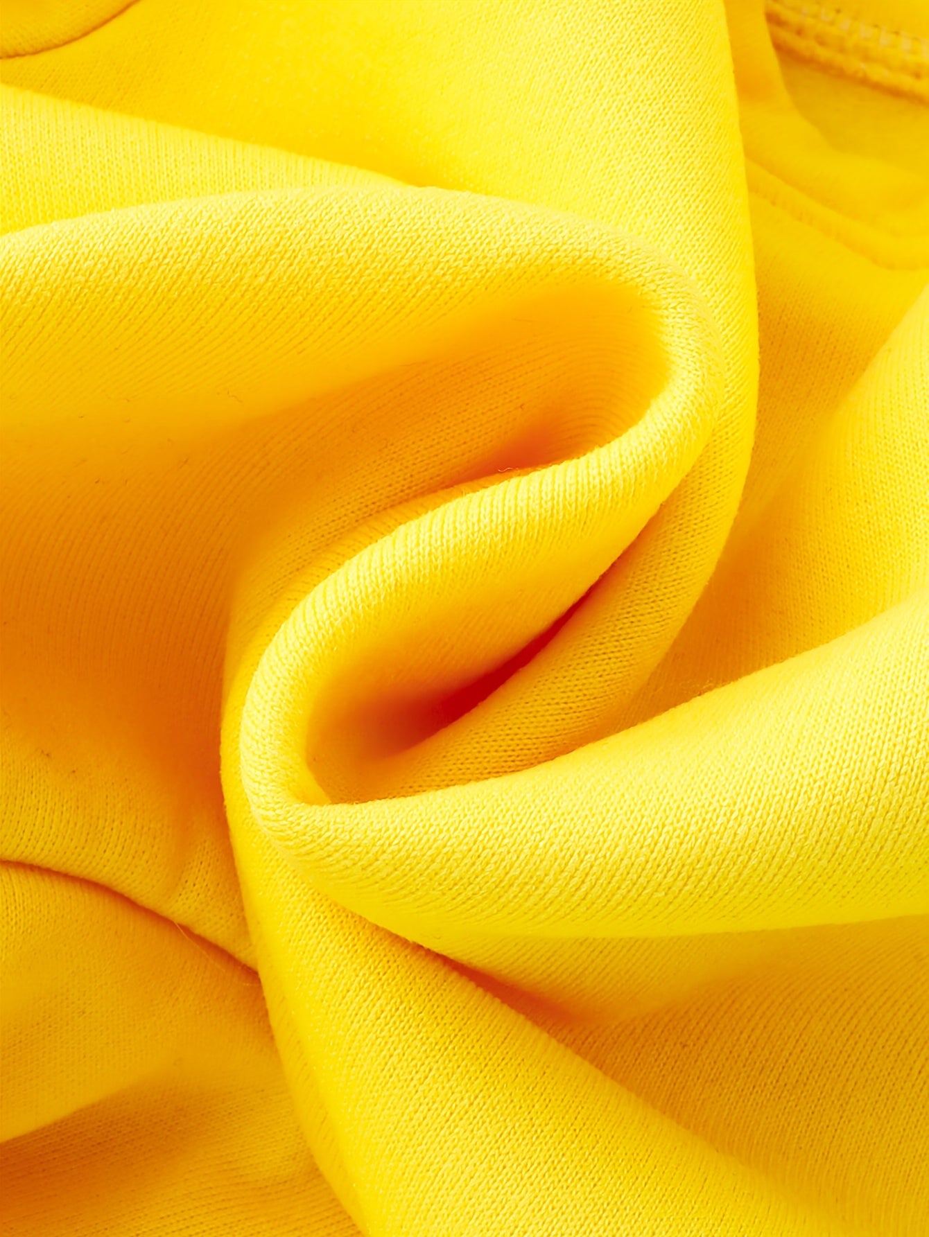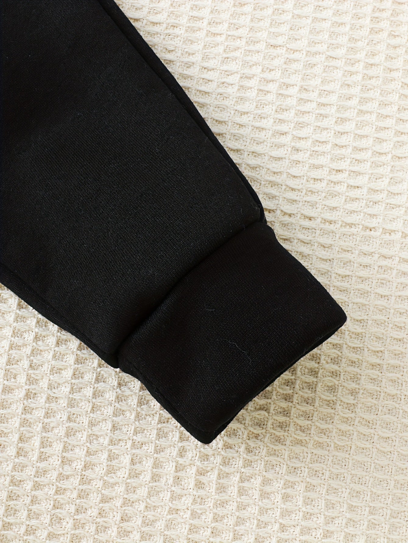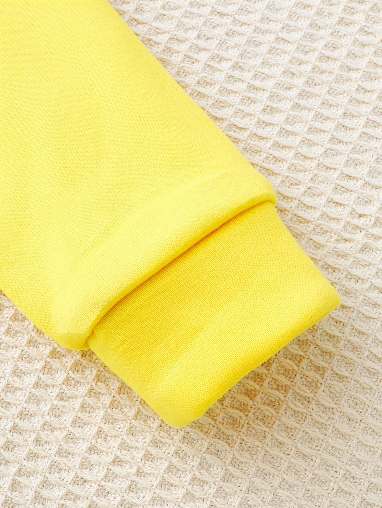 Warner Series Boys' Autumn/Winter New "Tom and Jerry" Series Set: Classic Nostalgic Yellow Top with Tom and Jerry Letter Print and Black Warm Fleece-Lined Pants, 2-Piece Casual Comfortable Everyday Outfit