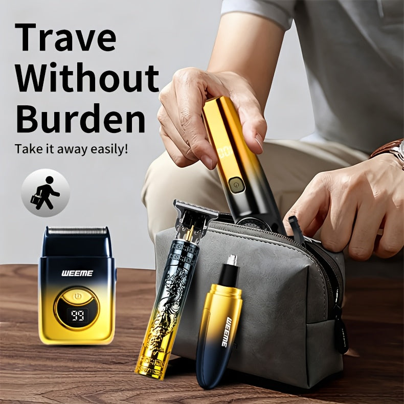 WEEME 4pcs Hair Clipper for Men Set, Cordless Electric Hair Clipper, T-Shaped Beard Trimmer & Nose Hair Trimmer, Electric Shaver, Professional Haircutting and Beauty Kit for Men Grooming, Home Barber Use, Precision Styling To