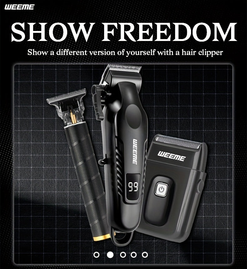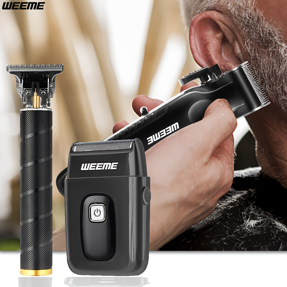 WEEME Men'S Grooming Three-Piece Set Multifunctional Electric Clipper Trimmer with Alloy Stainless Steel Blade Three-Speed Adjustment USB Fast Charging LCD Power Display Ultra-Long Battery Life Essential for Home Travel Car B