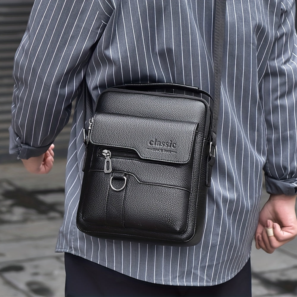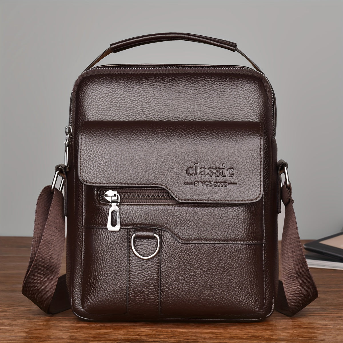 WEIXIER Men'S Set Shoulder Bag, Unisex Waist Postman Bag, Crossbody Chest Bag, Handbag, PU Fabric Multi-pocket, with Card Holder Wallet, Adjustable Detachable Shoulder Strap, Casual Commuting Bag Retro Business Texture Men'S