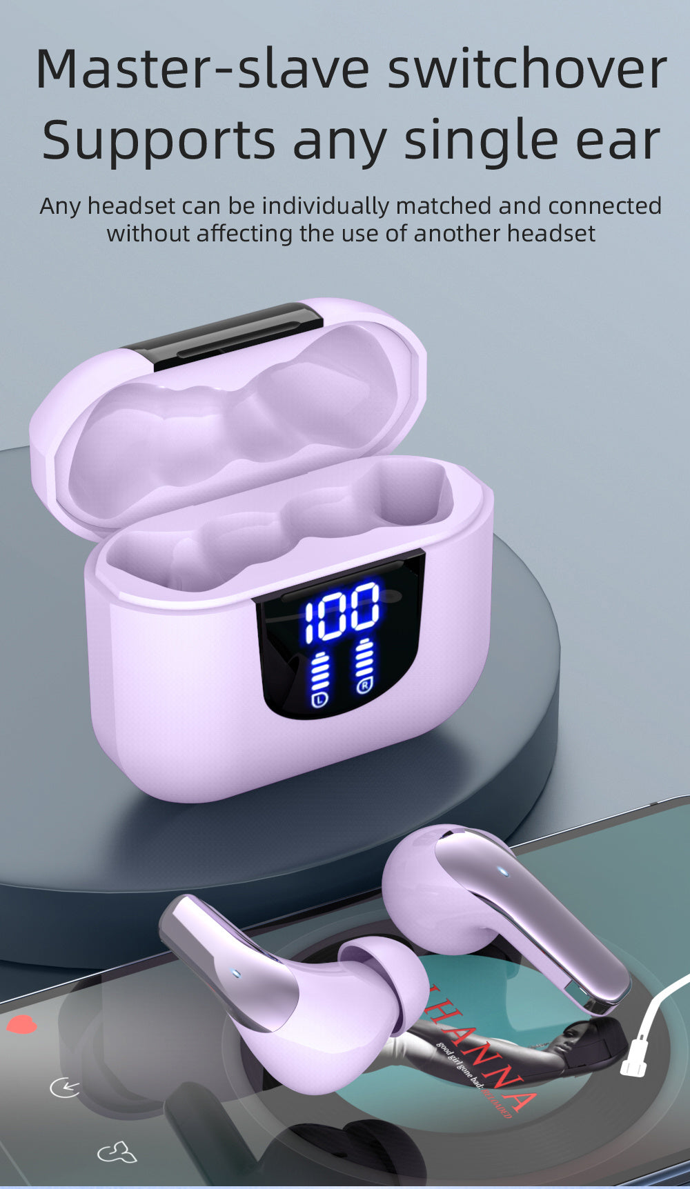 Wireless Headphones, Wireless 5.3 Earbuds, 13mm Speaker, 30H Playtime, Type-C Fast Charging Box, Stereo Wireless In-Ear Headset, Suitable for iPhone and Android In-Ear Headsets, Gaming Business Sports Headphone Mic