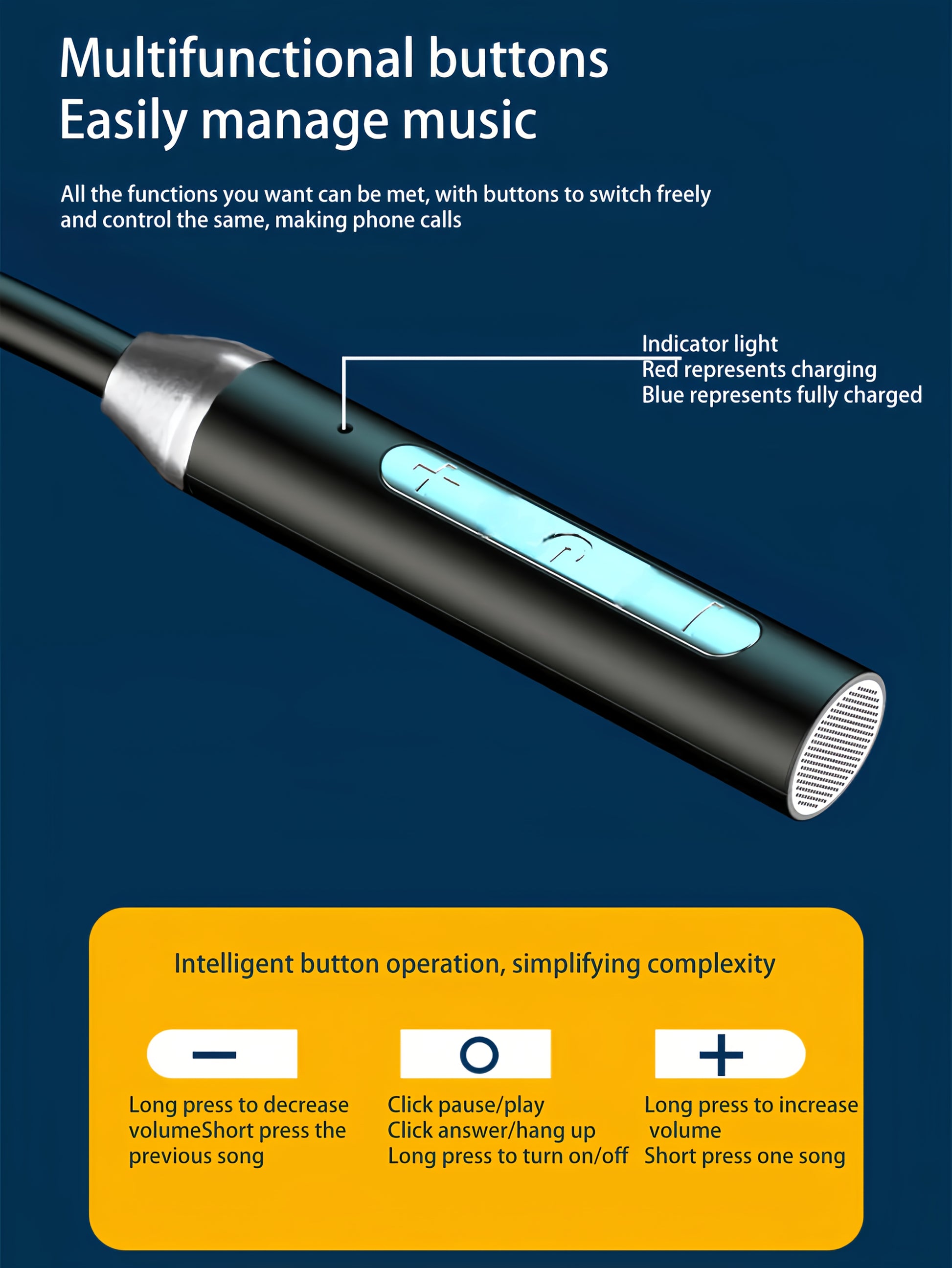 Wireless Neckband Headphones, High-Capacity, Ultra-Long Battery Life, with Microphone for Noise Cancelling Clear Calls, In-Ear Earbuds Earphones, Booming Sound for Sports, Running, Gym,Workout, for for Android for Iphones Pho