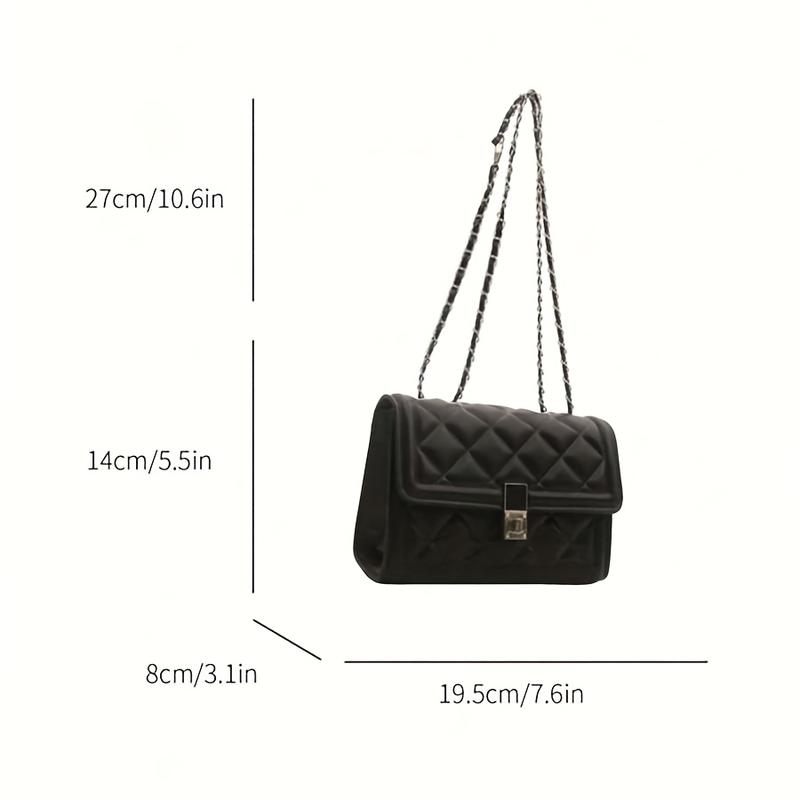 Women' Elegant Black Handbag with Rotating Lock Closure & Chain Strap - Convertible Crossbody/Shoulder Bag Suitable for, Travel, Daily Use - Durable Structured Wallet-Purse with Chain Strap Accessory ()