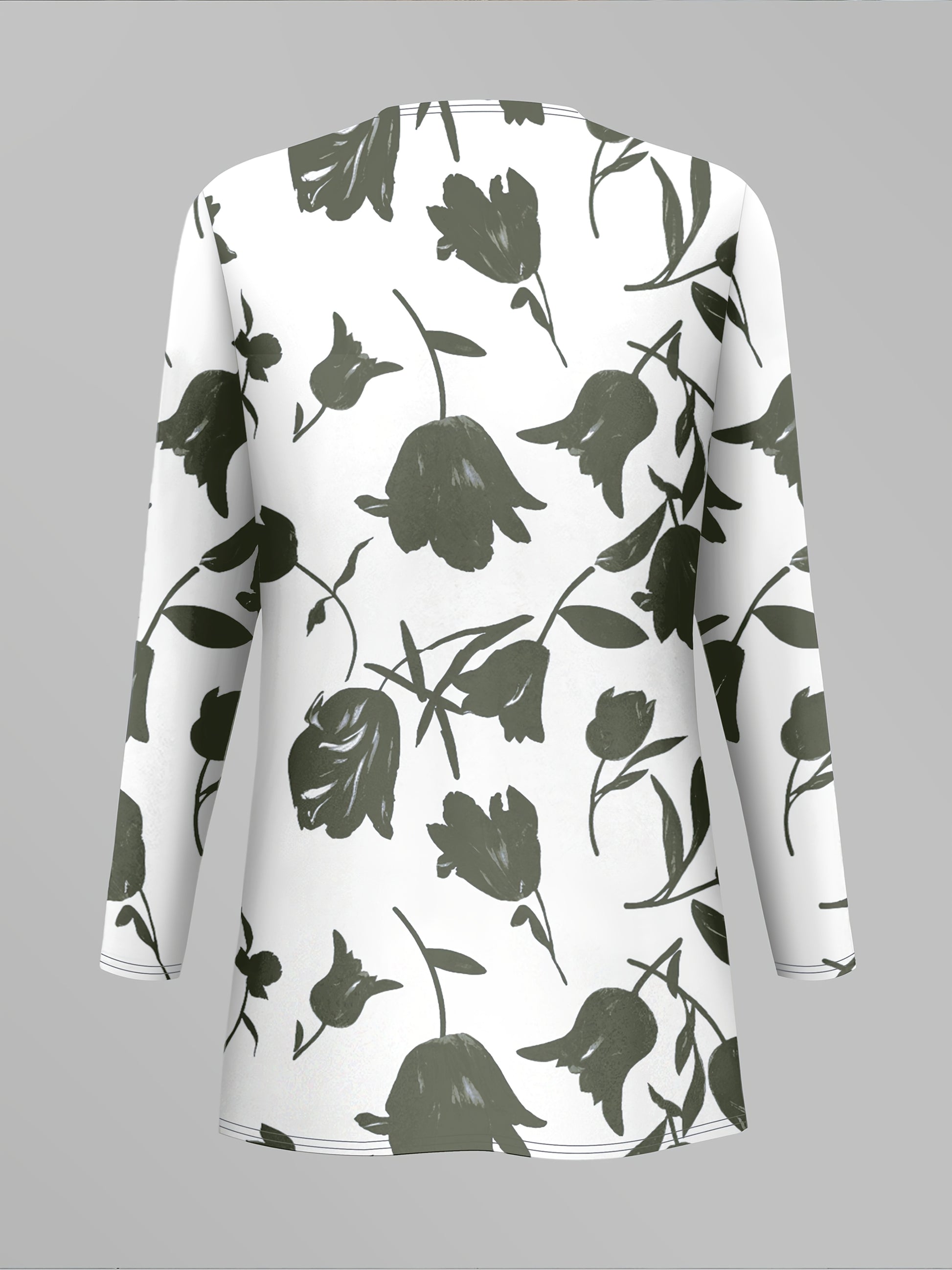 Women'S 3pcs Set, Floral Print Cardigan with Solid Color Cami and Wide-Leg Pants Casual Outfit