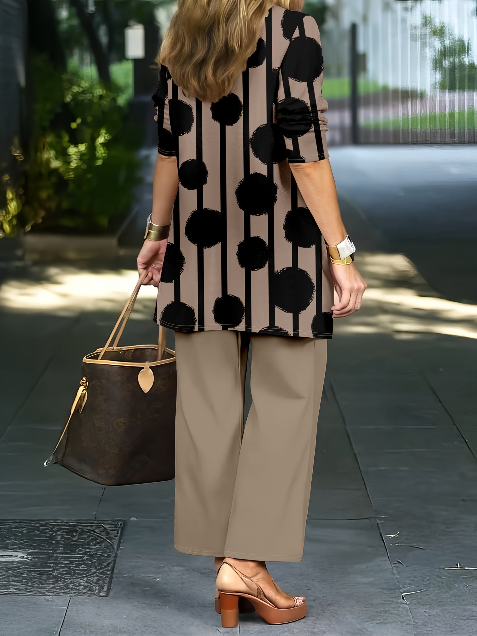 Women'S 3pcs Set, Polka Dot Print Cardigan & Solid Color Vest Casual Pants Daily Outfit