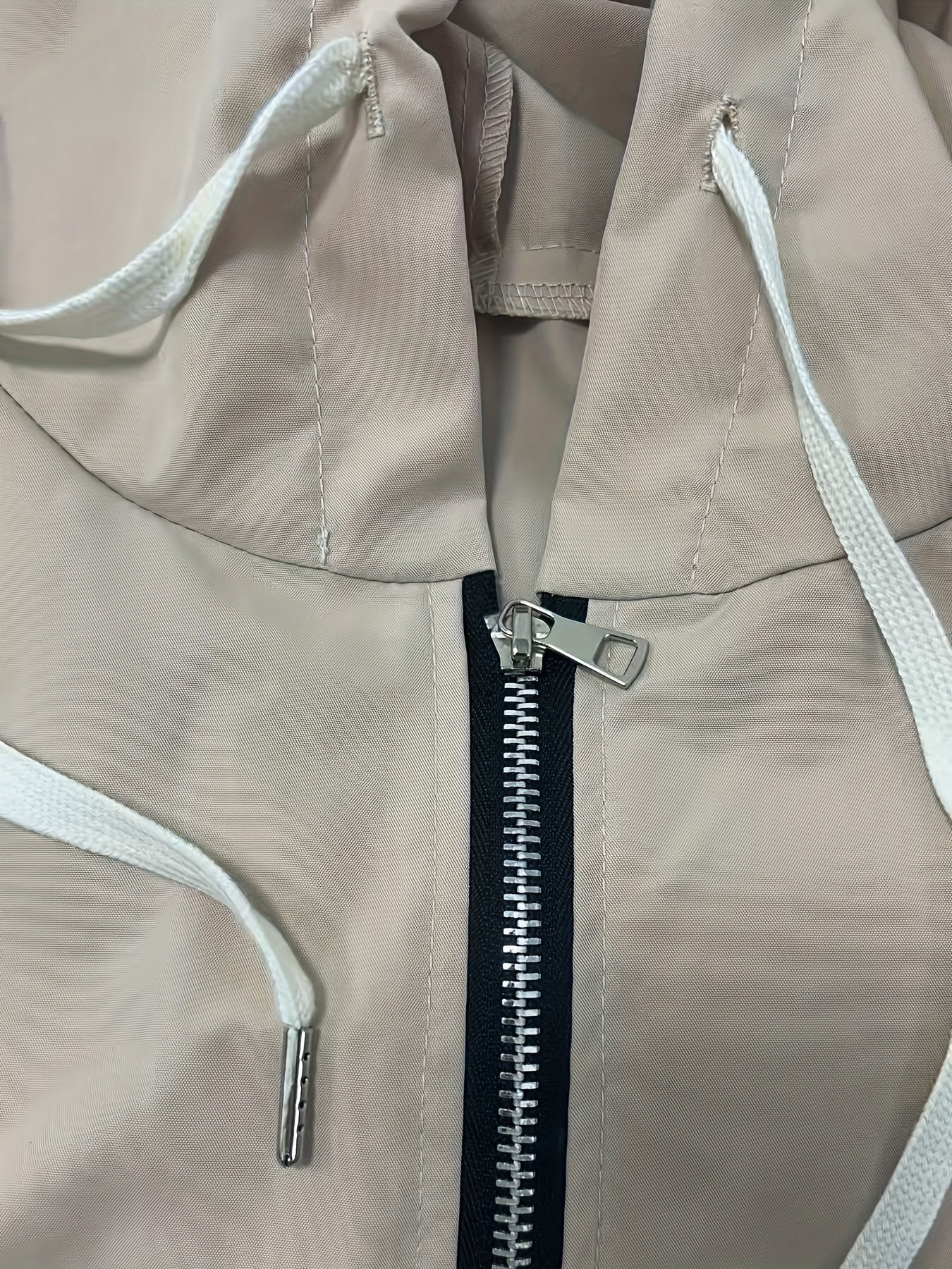 Women's Beige Full-Zip Hooded Jacket - Lightweight Full-Zip Outerwear, Full-Length Zipper Closure, Structured Fit Casual Coat for Fall/Spring, Everyday & Formal Events - Beige Trench Jacket, Zip Up Jacket Women, Jackets for W