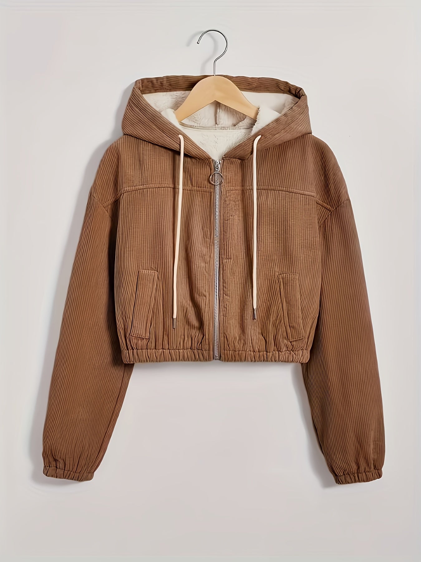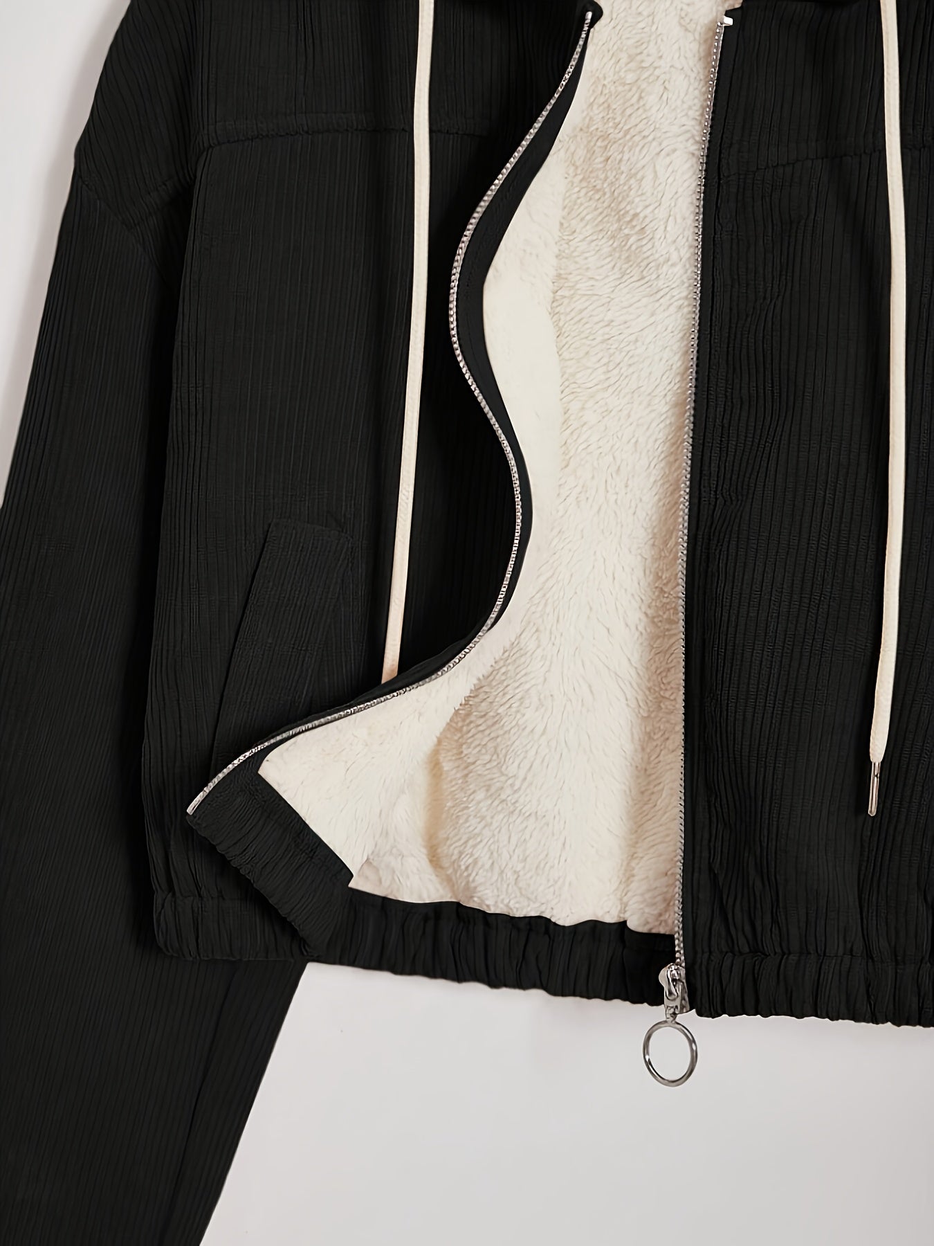 Women'S Black Hooded Jacket with Fleece Lining - Full-Zip Winter Coat, Full-Zip Front Closure, Zippered Pockets, Machine Washable Outer Shell