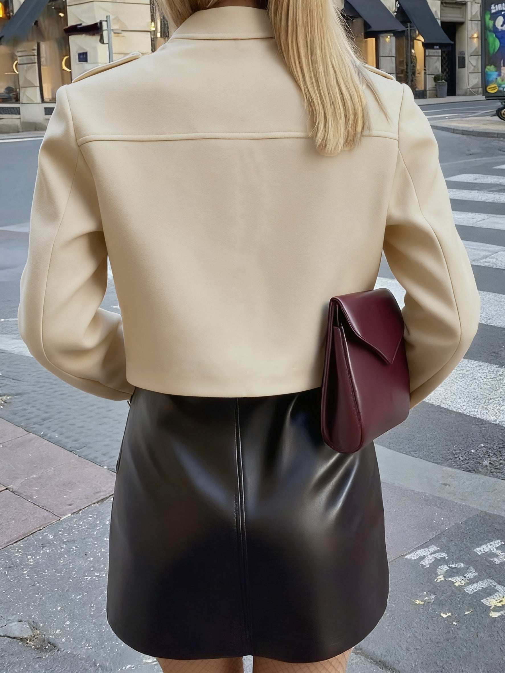 Women'S Burgundy Round-Neck Long-Sleeve Jacket with Pockets And Button Closure for Autumn And Winter, Stylish And Casual.