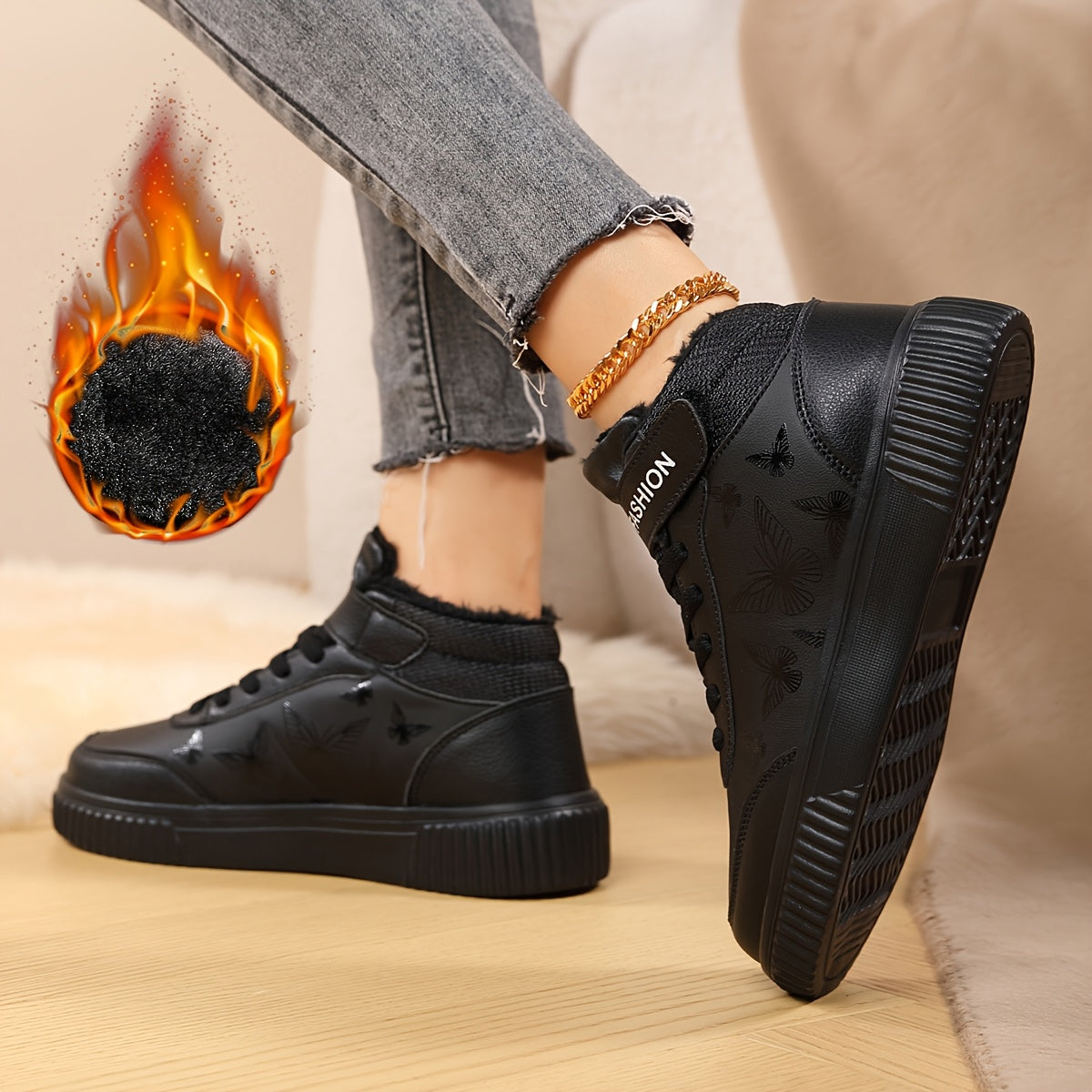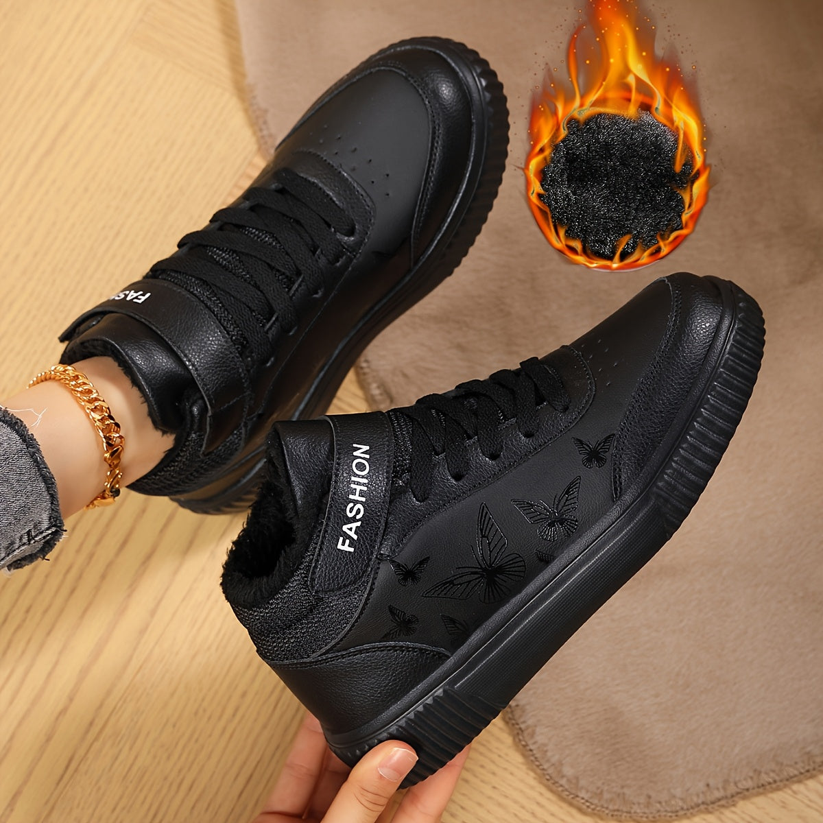 Women'S Butterfly Print Warm Sneakers - Lightweight, Comfortable, Thick-Soled Lace-Up Running Shoes for Work, School, and Stylish Outfits, Perfect for Students, Winter Footwear | Stylish Sneakers | EVA Sole Sneakers
