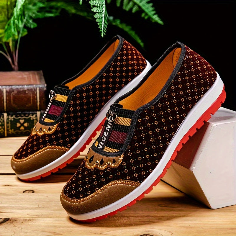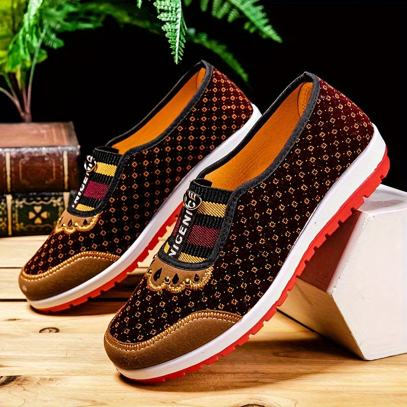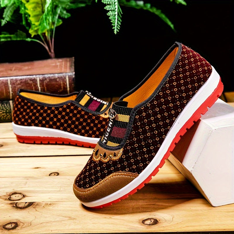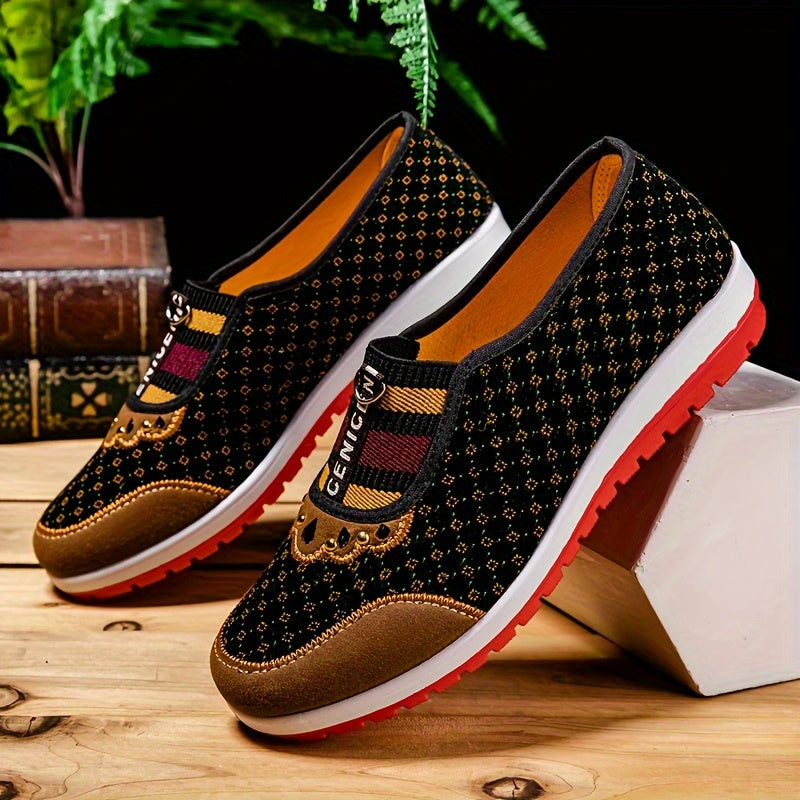Women's Casual Peking Cloth Flats, Comfortable Soft Sole Slip On Shoes, Chinese Style Low Top Flats