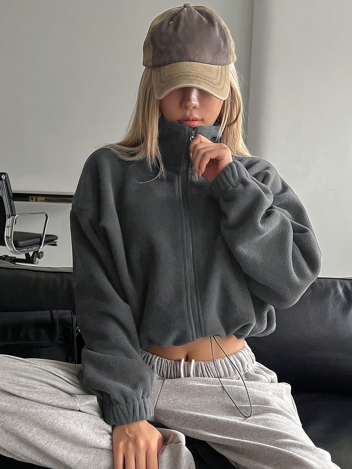 Women'S Casual Zippered Front Drawstring Hem Jacket - High-Neck Long Sleeve with Pockets, All-Season Comfort, Machine Washable, Versatile for Casual Attire, Casual Wear Jacket | Highneck Jacket | Zippered Jacket