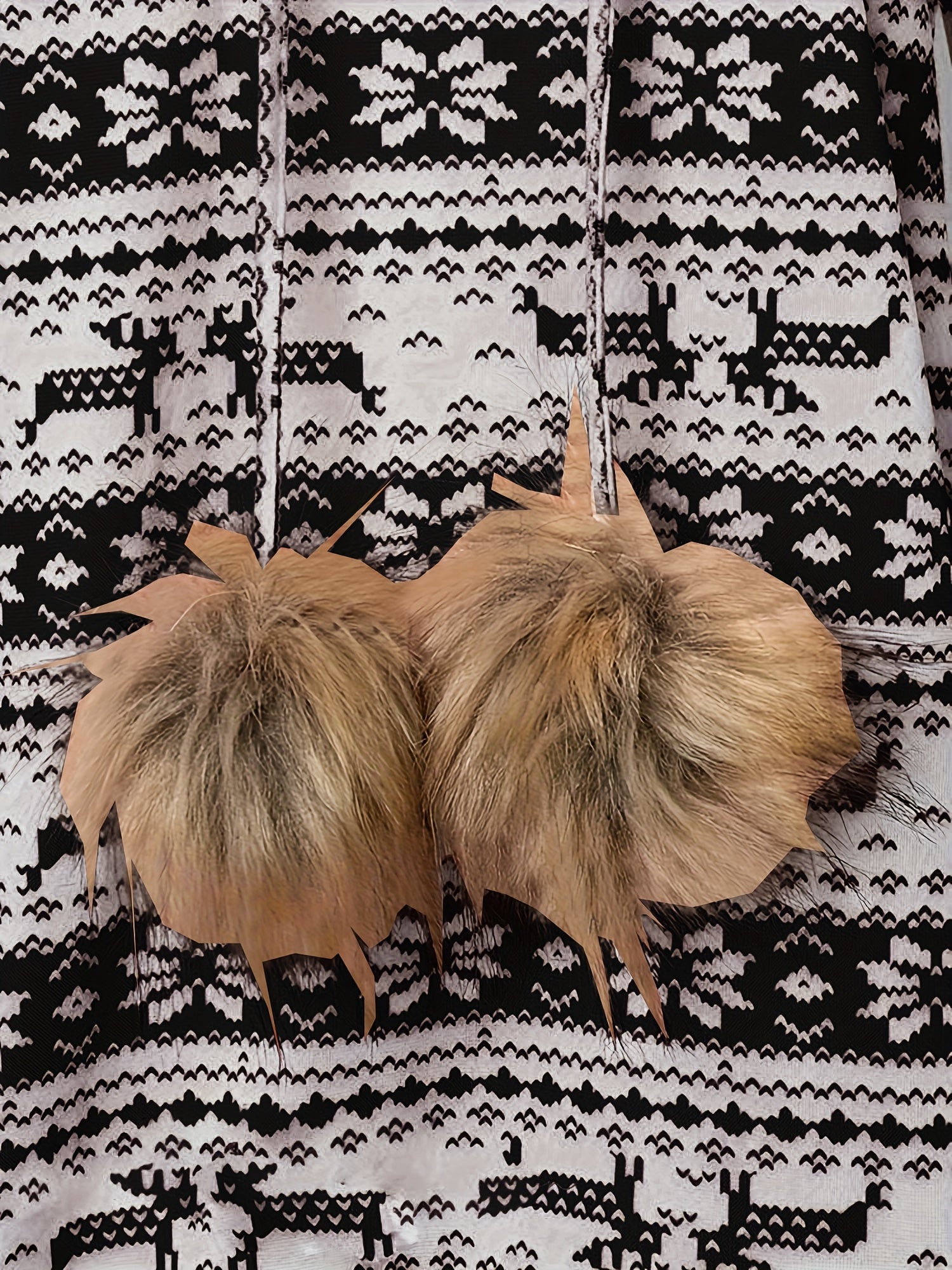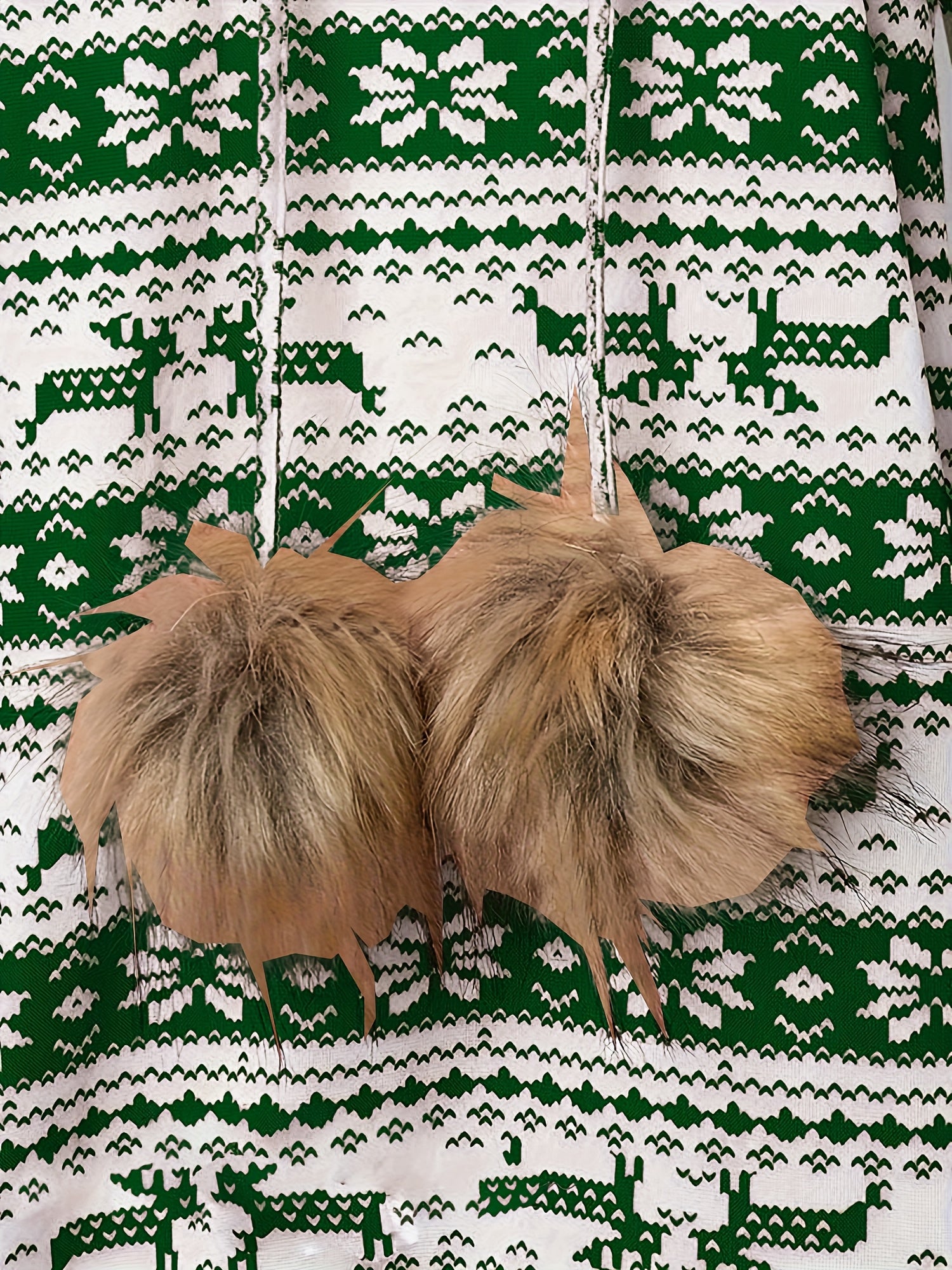 Women'S Christmas Deer & Snowflake Print Hooded Sweater Dress - Long Sleeve Winter Warmth, Red & Holiday Party Outfit with Pompom Sleeves