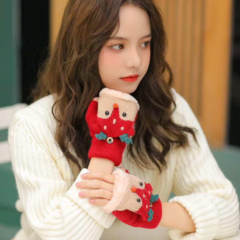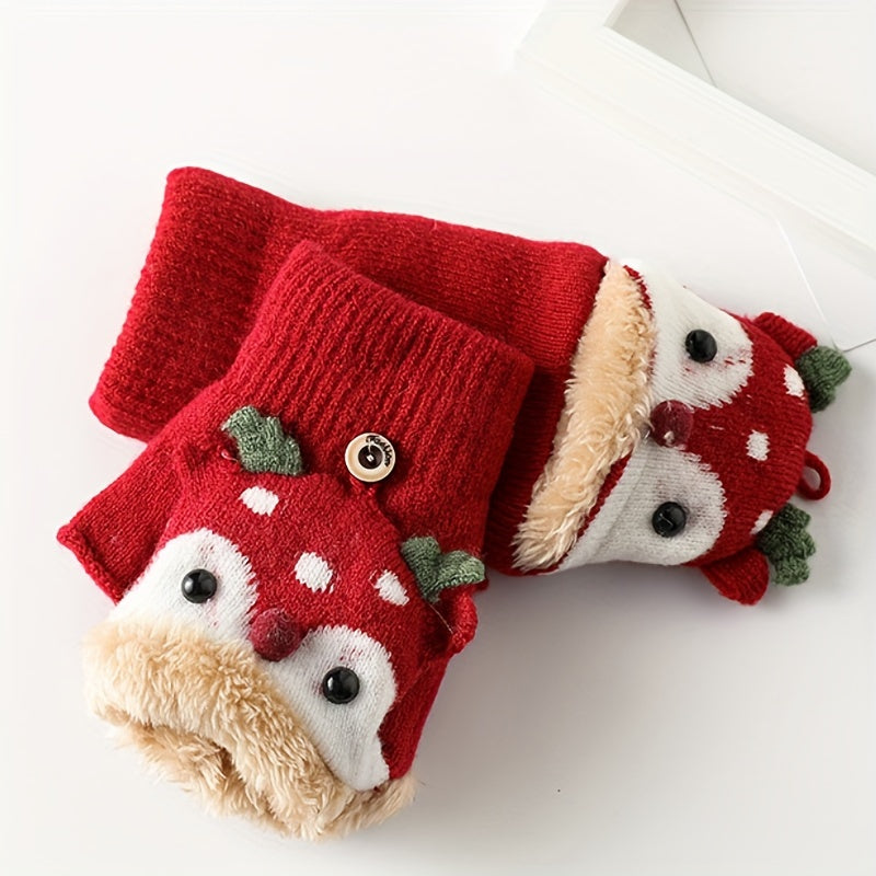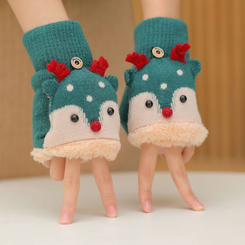 Women's Christmas Reindeer Flip-Over Gloves - Thick Warm Winter Gloves with Festive Snowflake & Reindeer Design, Non-Elastic for Indoor/Outdoor Use, Hand Wash/Dry Clean, Holiday Outdoor Wear, Warm Fabric