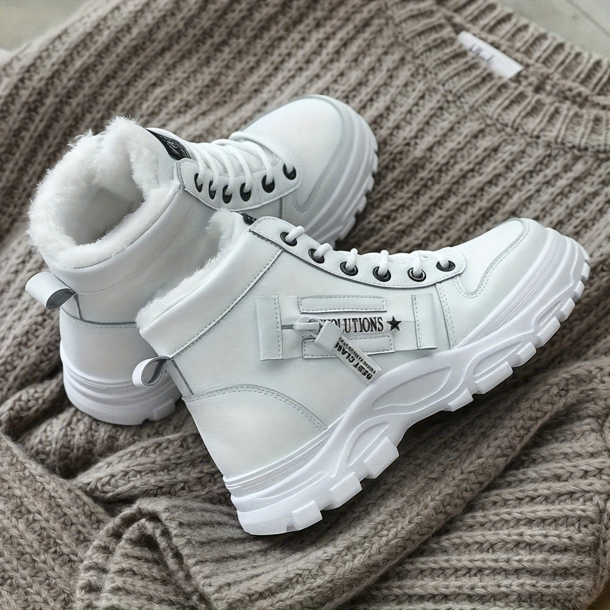 Women'S Chunky Platform Ankle Boots - Winter Warm Lace-Up Shoes with Thick Platform Heel, Slip-Resistant Rubber Sole - Synthetic Cover Upper - for Everyday, Formal, Cold Weather - Black/White/Khaki - Easy-Clean & Durable Desi