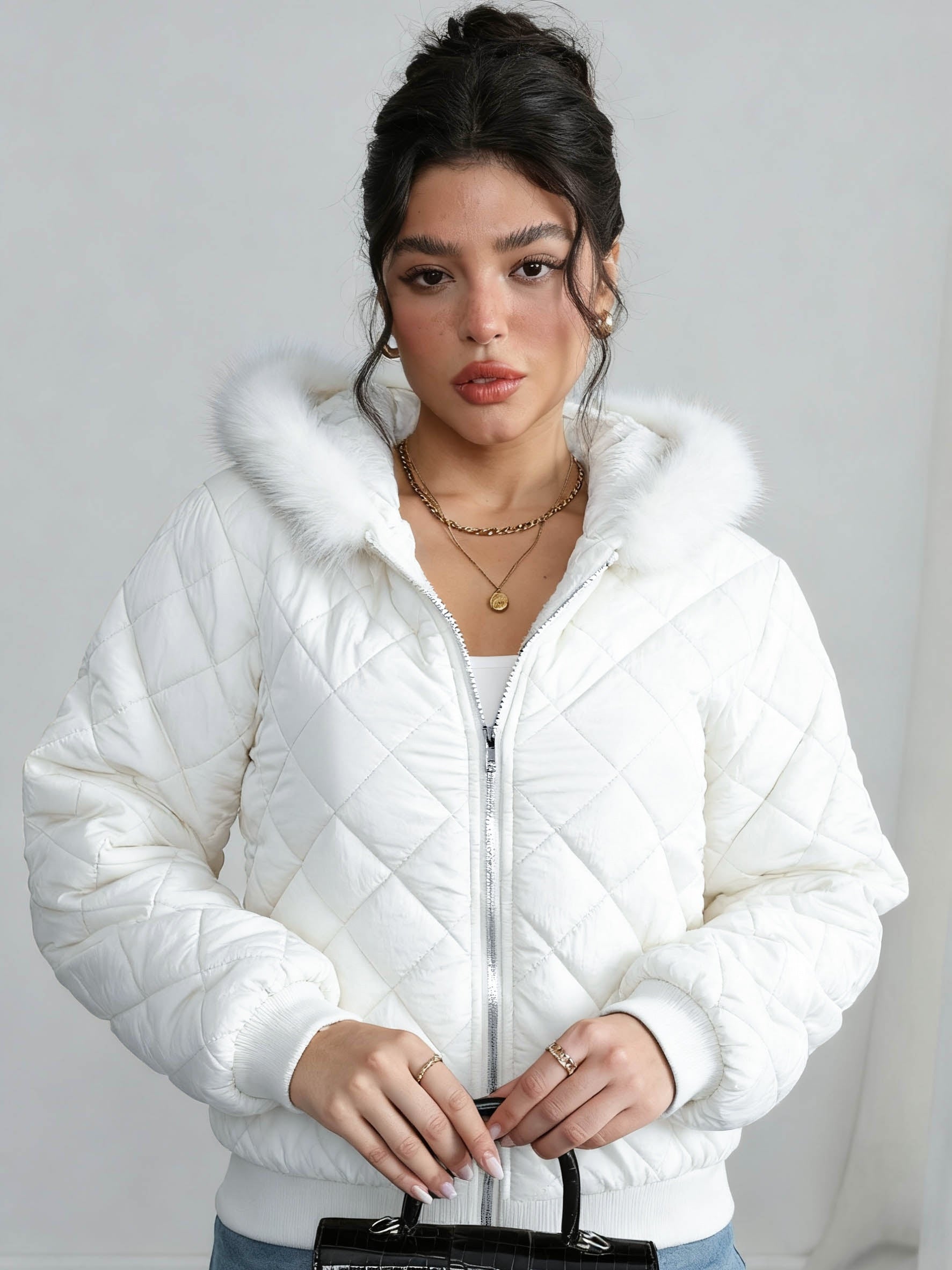 Women'S Cozy Fleece-Lined Hooded Jacket - Casual Long Sleeve, Solid Color, Regular Fit, Long Sleeve, Zip-Up, Casual Style, Casual Outerwear, Winter Jacket