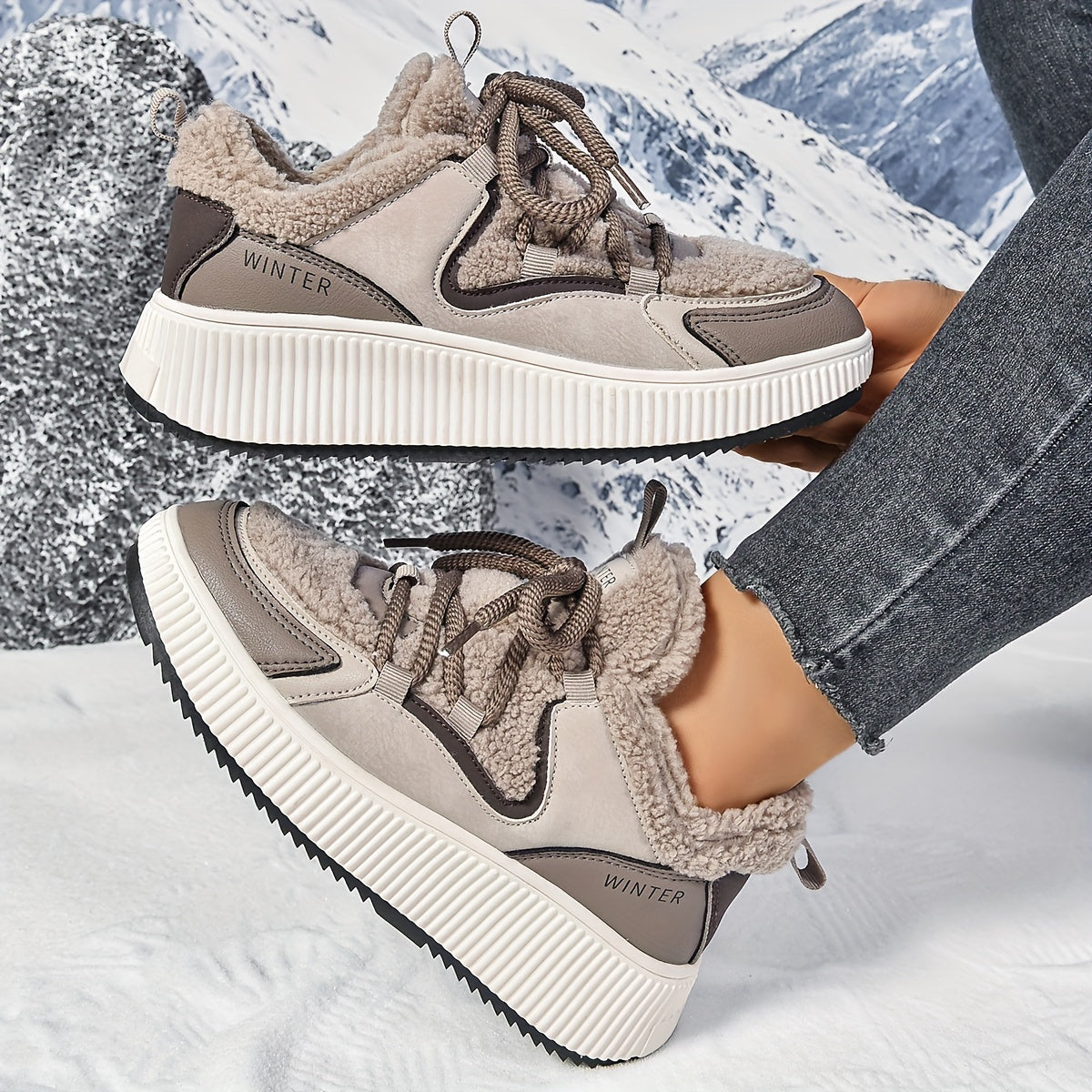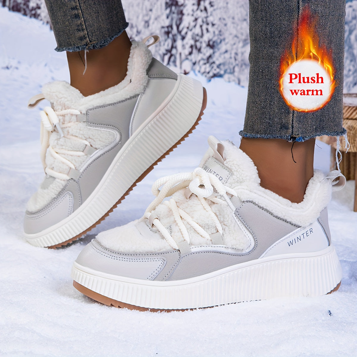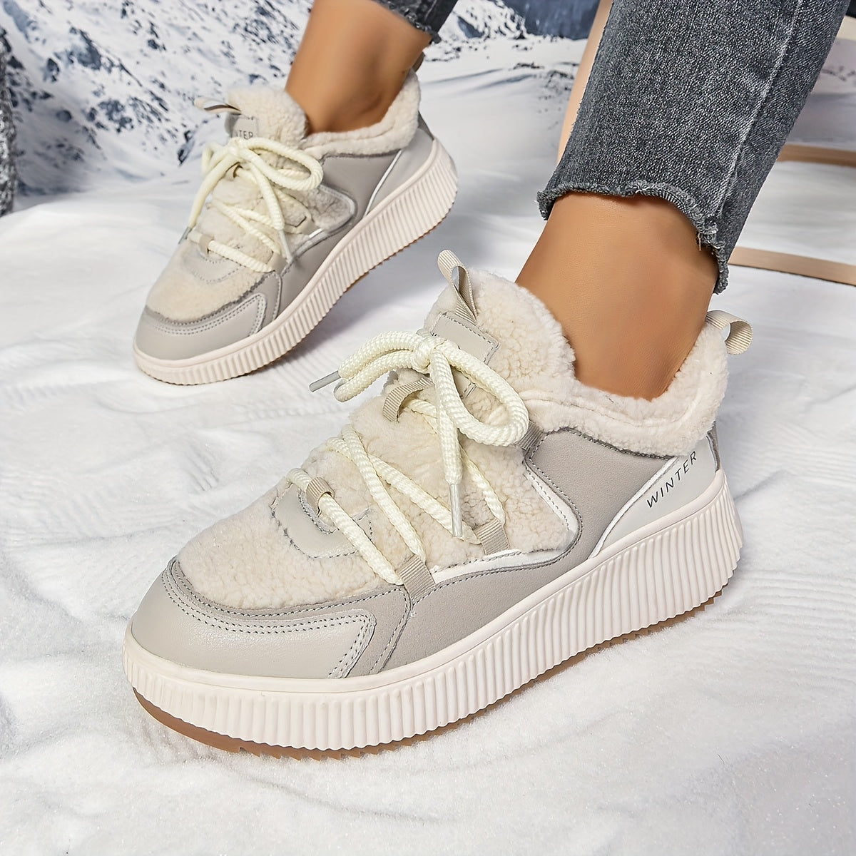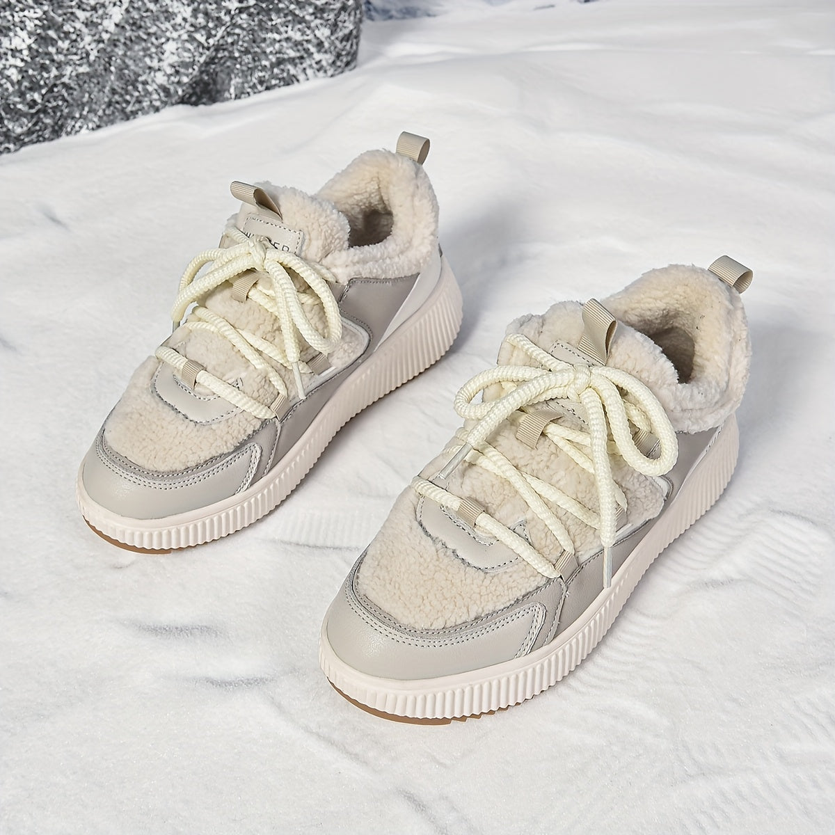 Women'S Cozy Fleece-Lined Low-Top Ankle Boots - Warm, Stylish, and Comfortable for All Seasons, Casual Lace-Up Design with Thick Rubber Sole, Beige, Casual Footwear | Stylish Ankle Boots | Plush Lined Interior