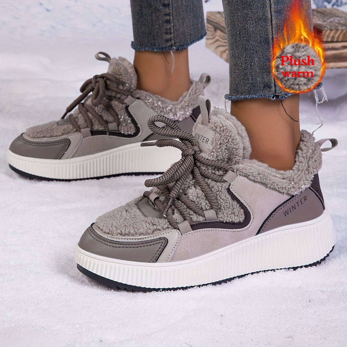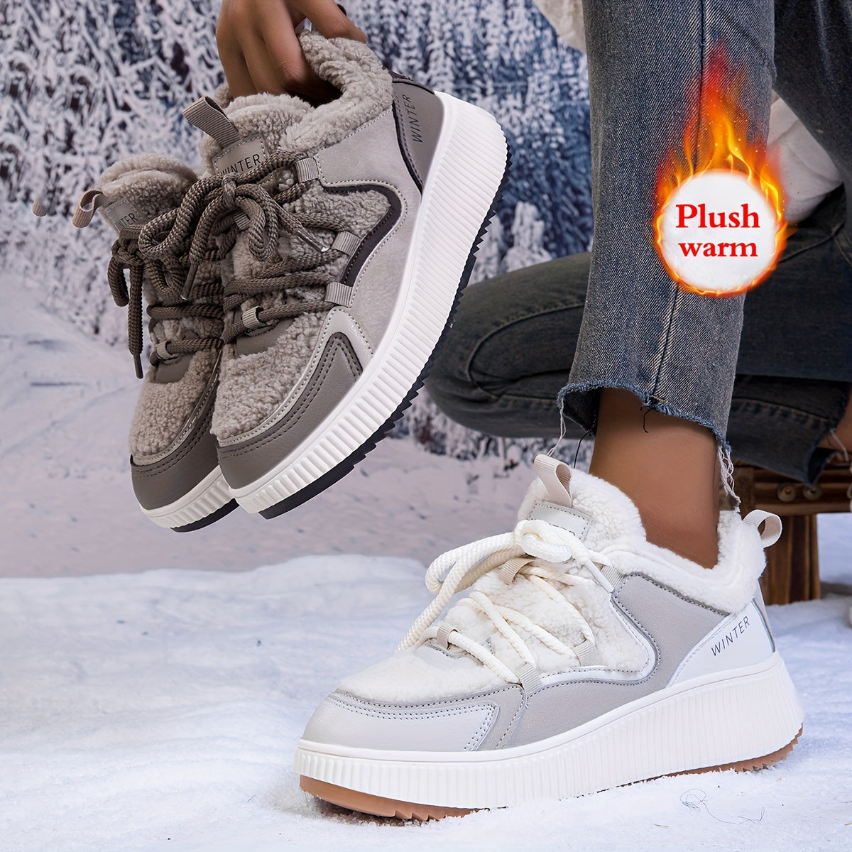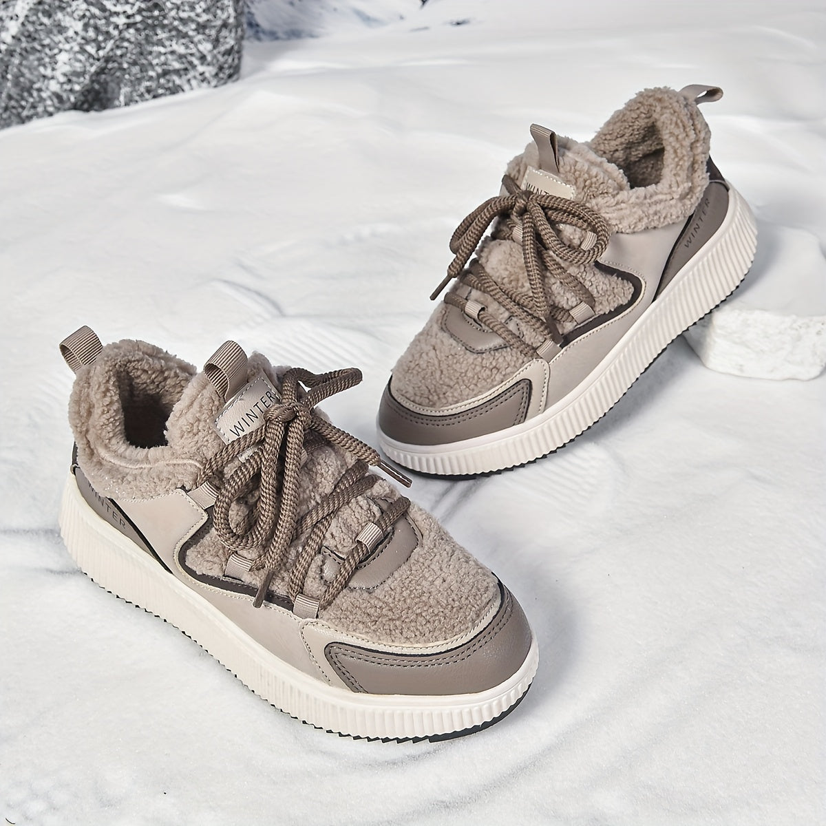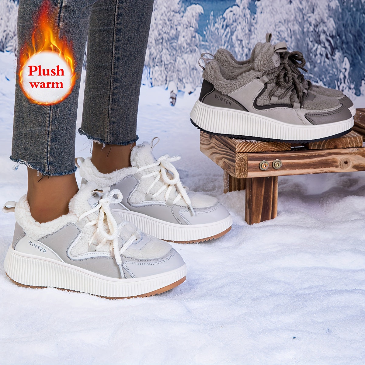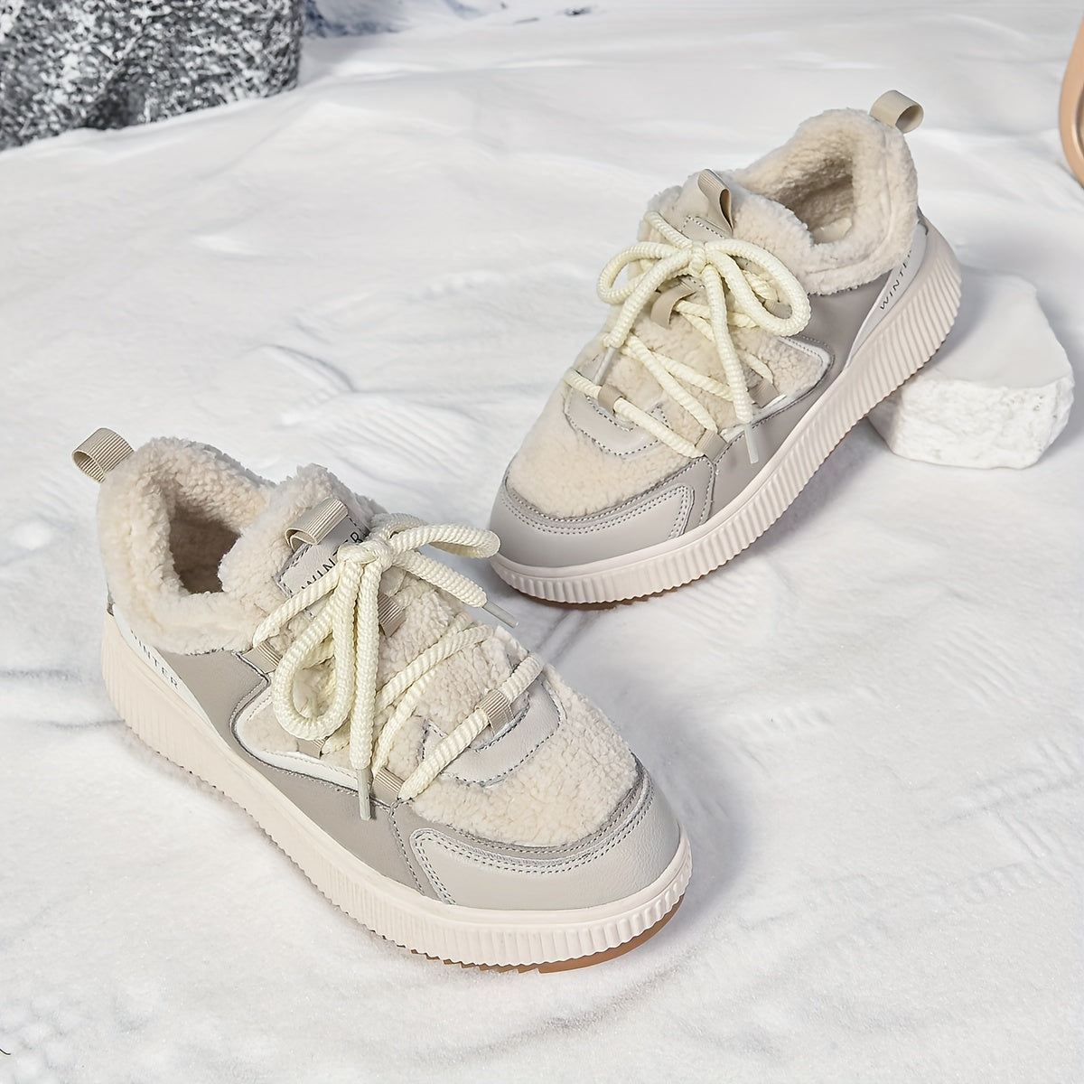 Women'S Cozy Fleece-Lined Low-Top Ankle Boots - Warm, Stylish, and Comfortable for All Seasons, Casual Lace-Up Design with Thick Rubber Sole, Beige, Casual Footwear | Stylish Ankle Boots | Plush Lined Interior