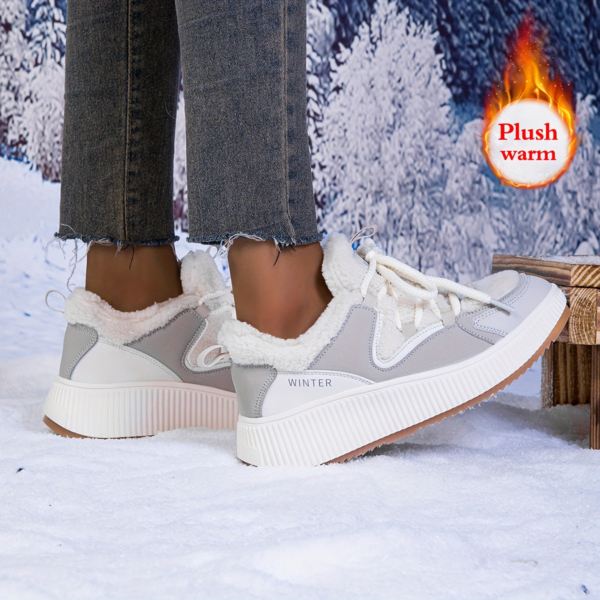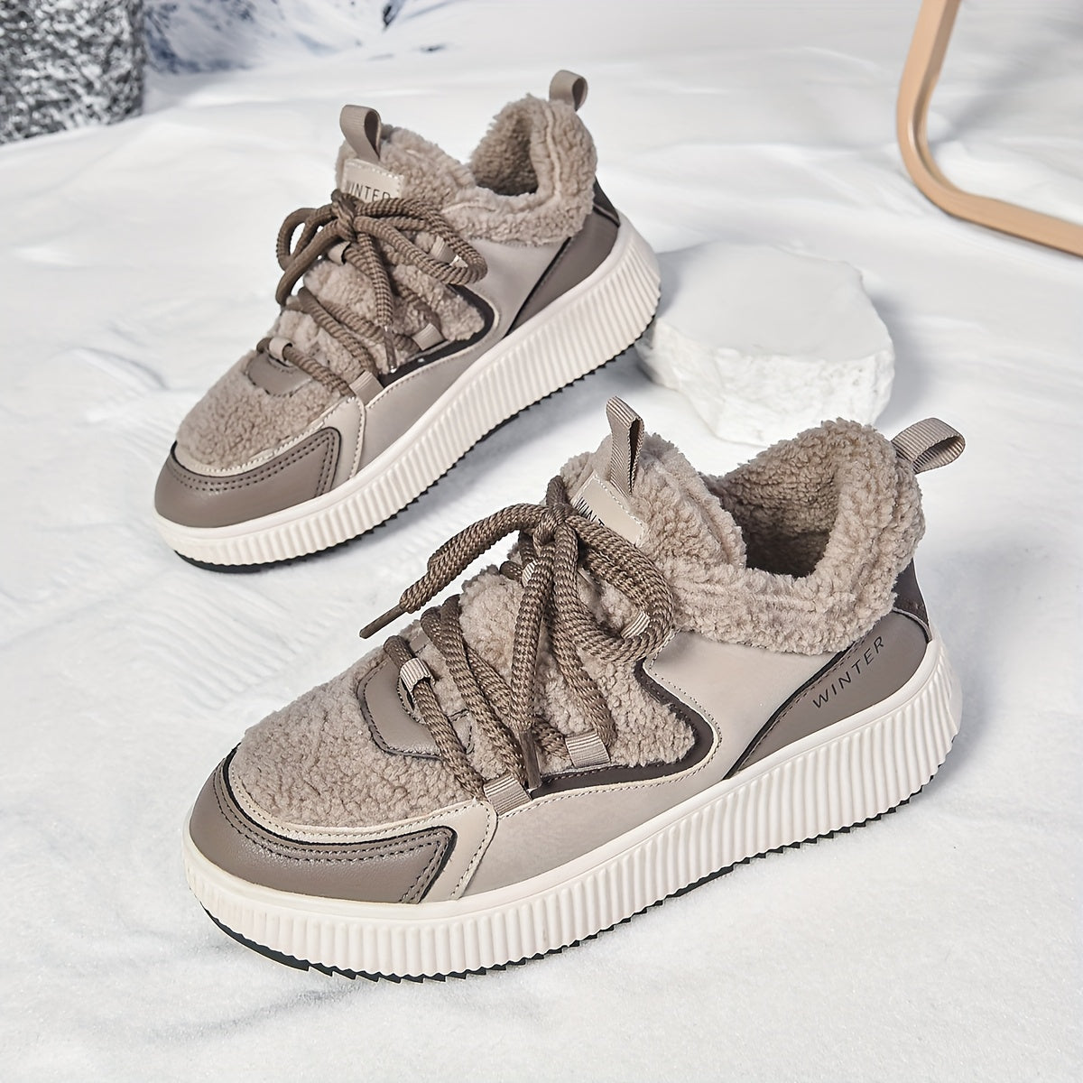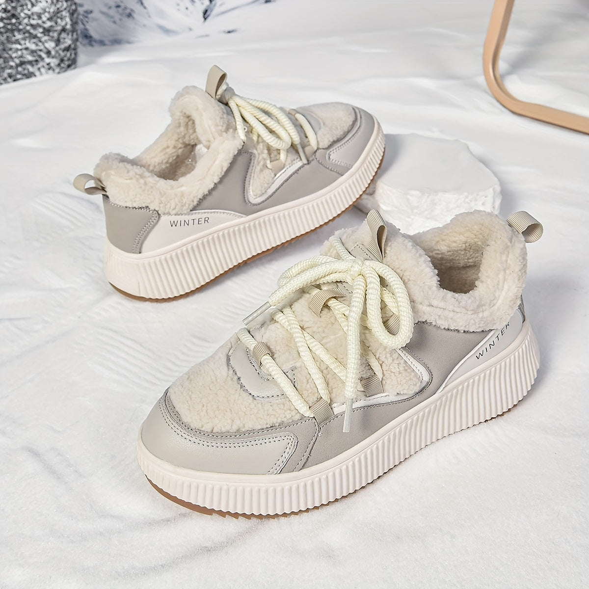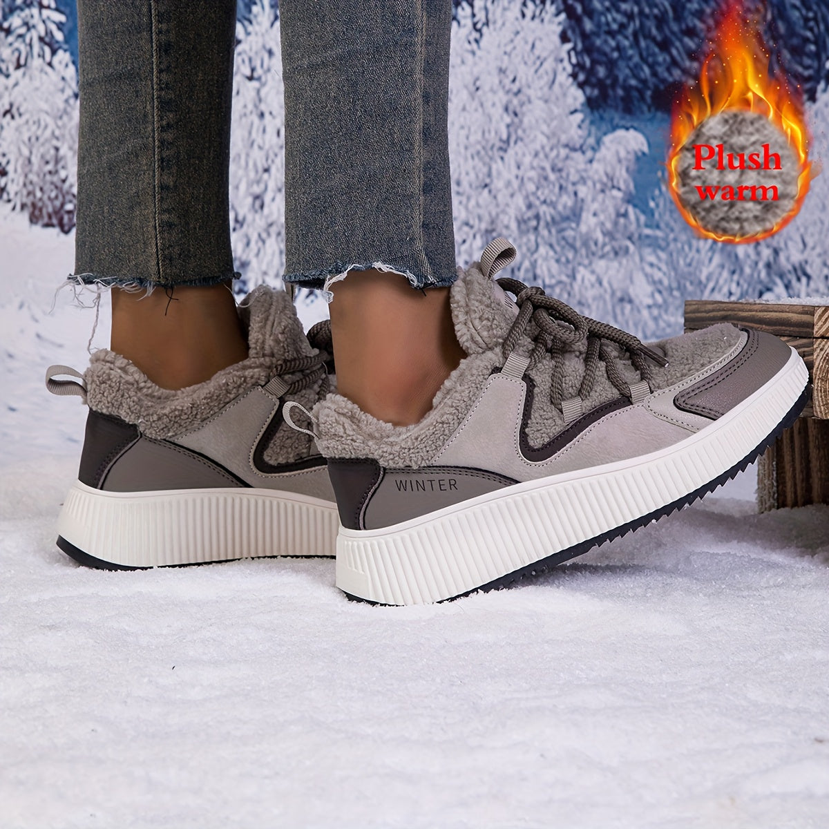 Women'S Cozy Fleece-Lined Low-Top Ankle Boots - Warm, Stylish, and Comfortable for All Seasons, Casual Lace-Up Design with Thick Rubber Sole, Beige, Casual Footwear | Stylish Ankle Boots | Plush Lined Interior