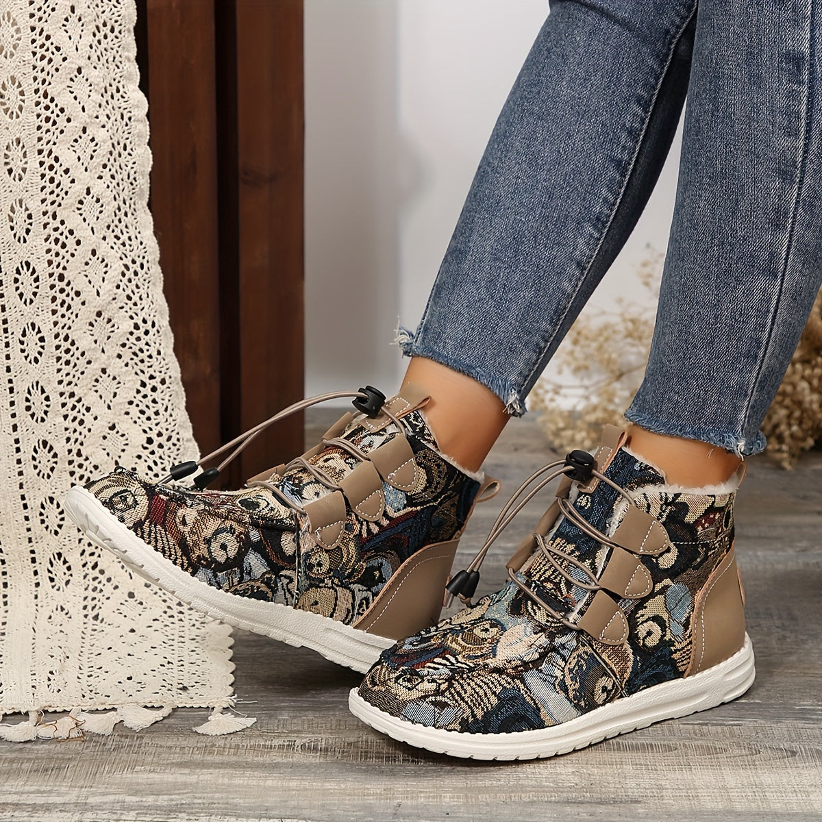 Women'S Cozy Winter Boots - Comfortable Slip-On Mid-Calf Riding Boots with Thick Sole, Round Toe, White & Black Lace-Up Design - Perfect for Cold Weather, Snow Boots, Winter Boots