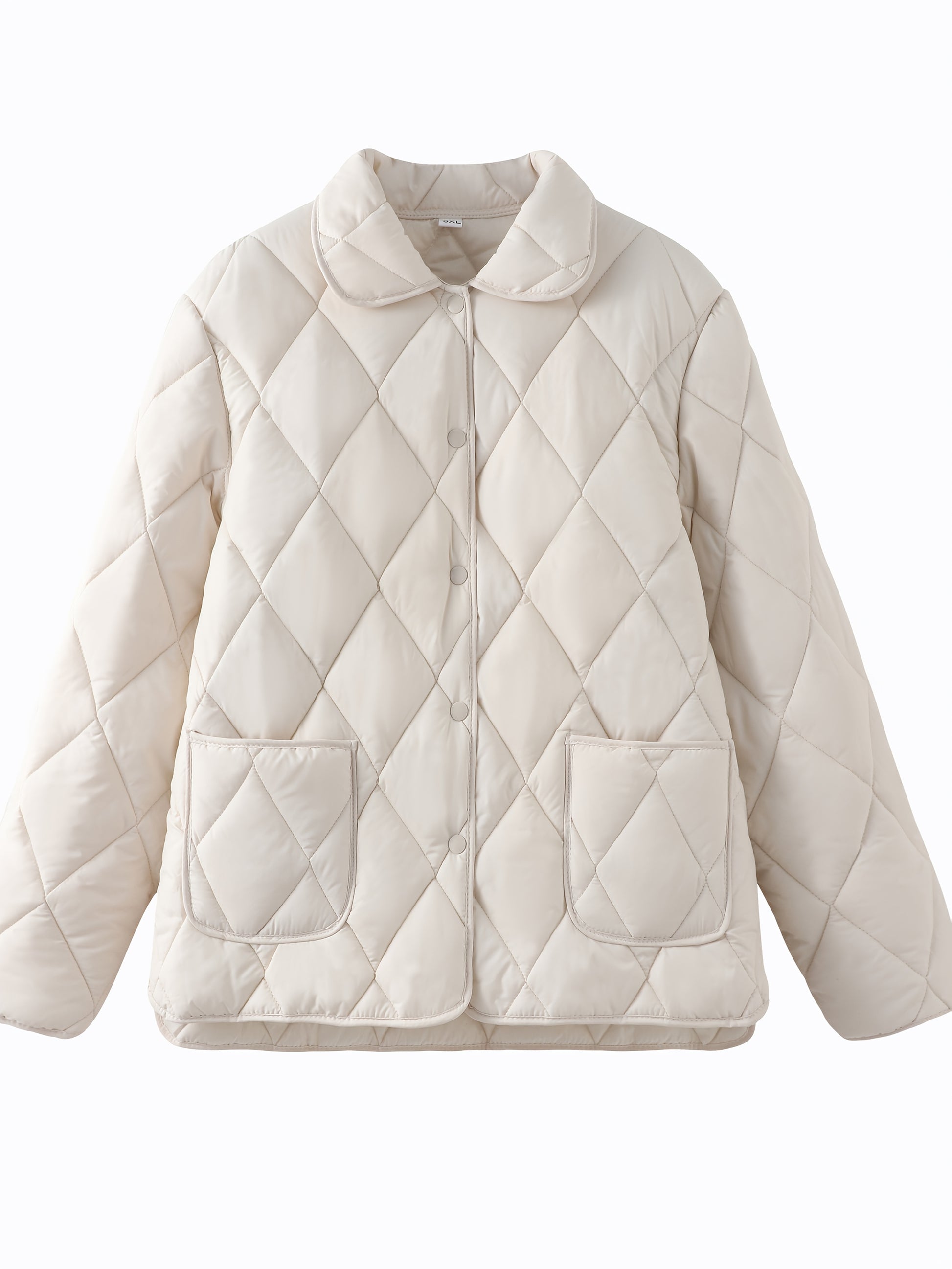 Women'S Elegant Beige Quilted Jacket - Long Sleeve, Button-Up, Stylish Autumn & Winter Coat, 100% Polyester Non-Stretch Fabric, Casual Style, Regular Fit, Autumn Winter Jacket|Quilted Jacket|Stylish Jacket
