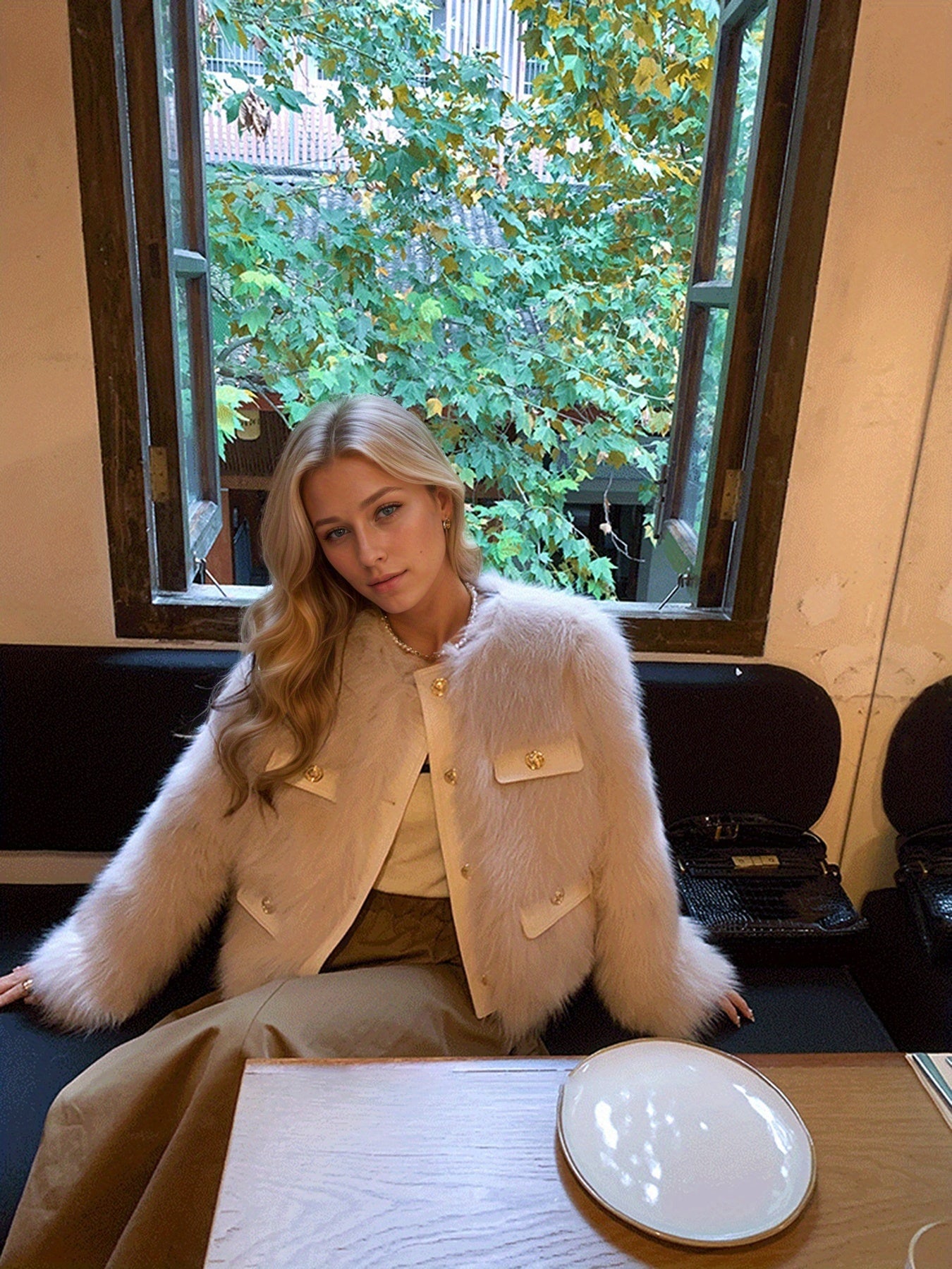 Women'S Elegant Faux Fur Coat - Chic Long Sleeve, Button-Up Front, Loose Fit, Solid Color, Perfect for Fall/Winter Casual Outings, Stylish Outerwear | Chic Long Sleeve | Sleek Design, Fur Coat For Women Winter, Fur Coat Women