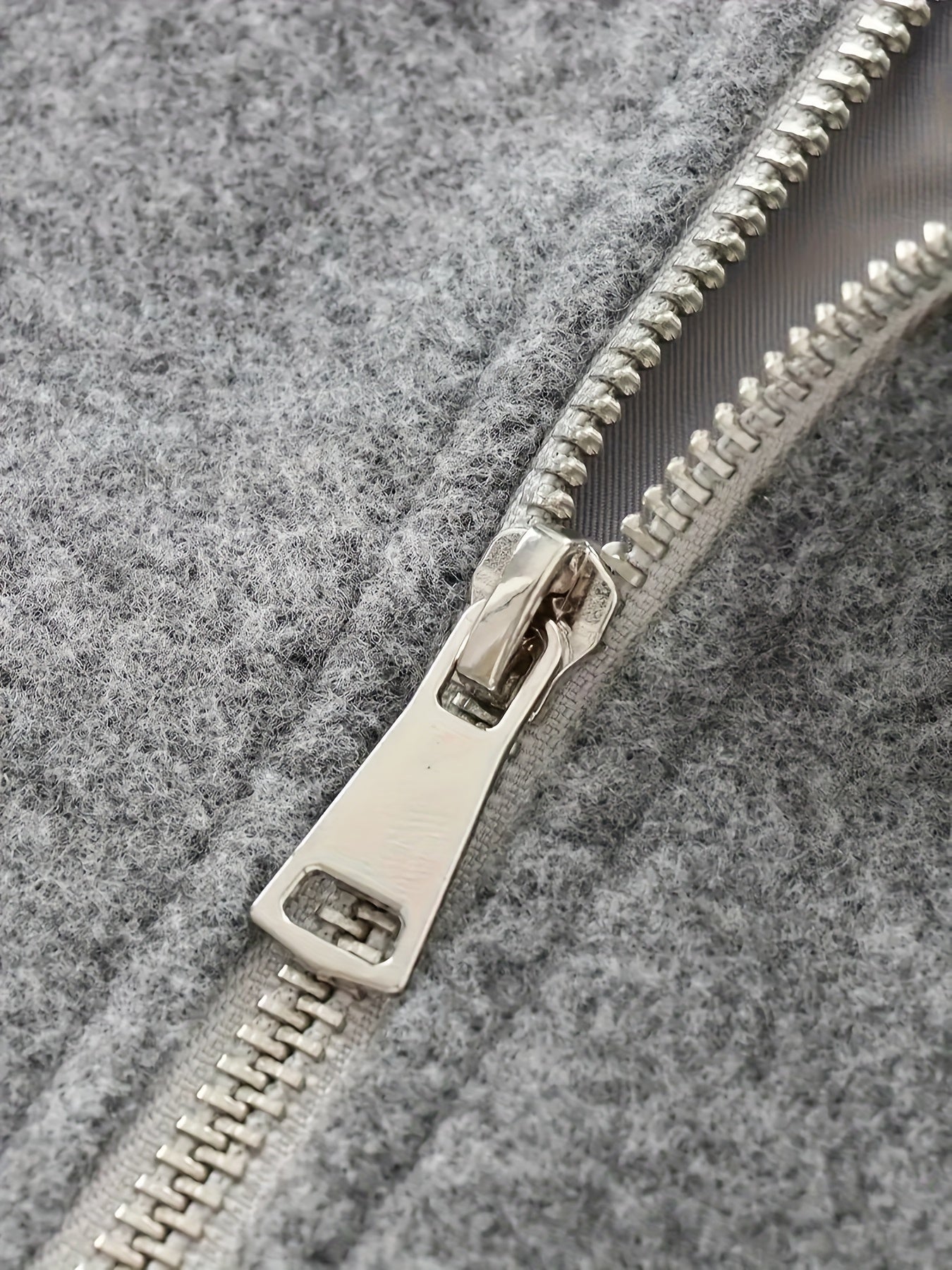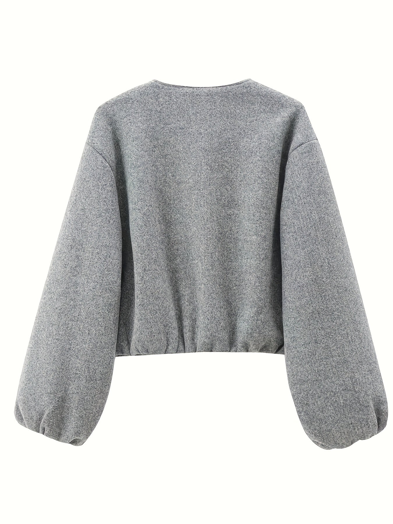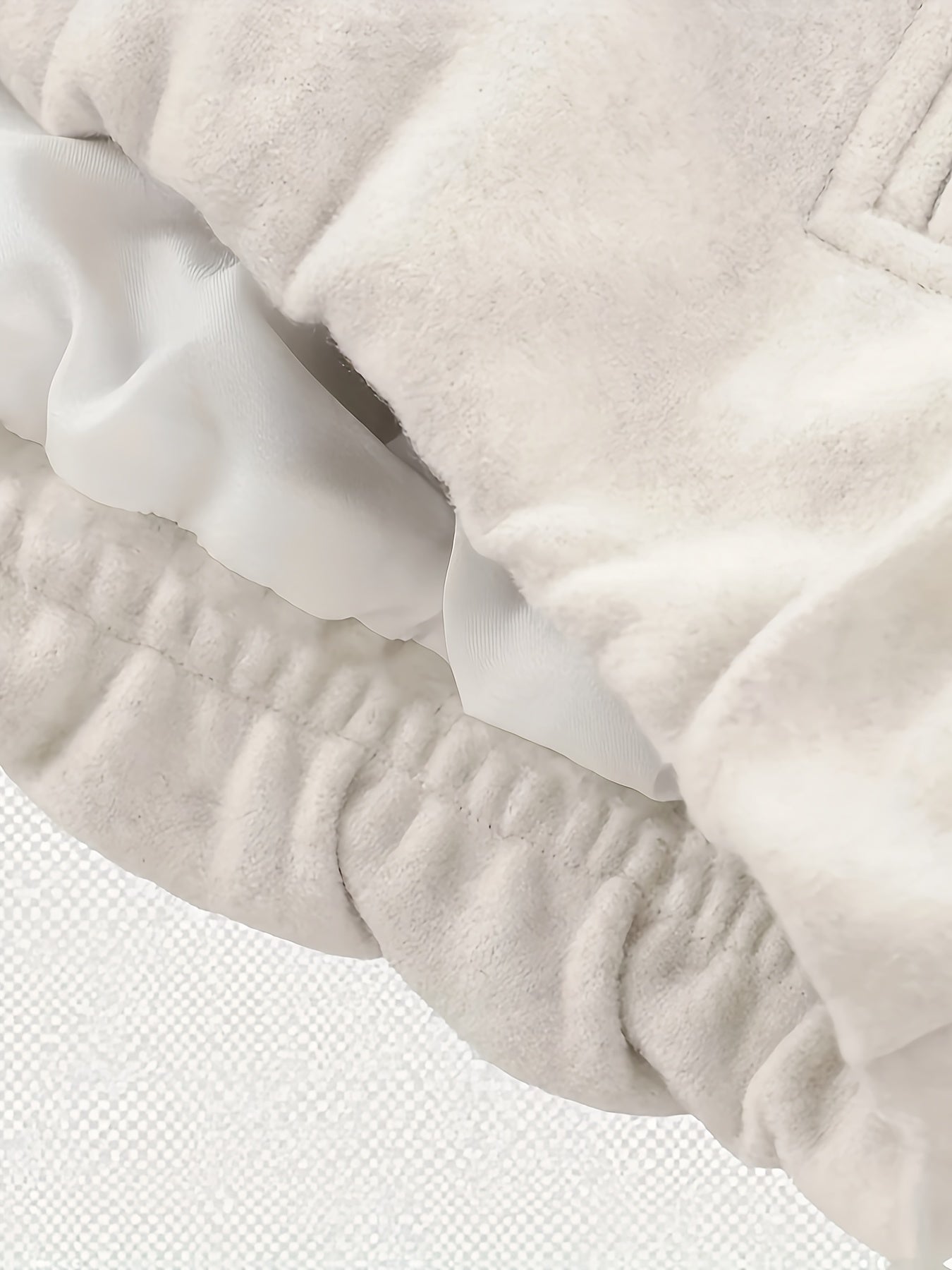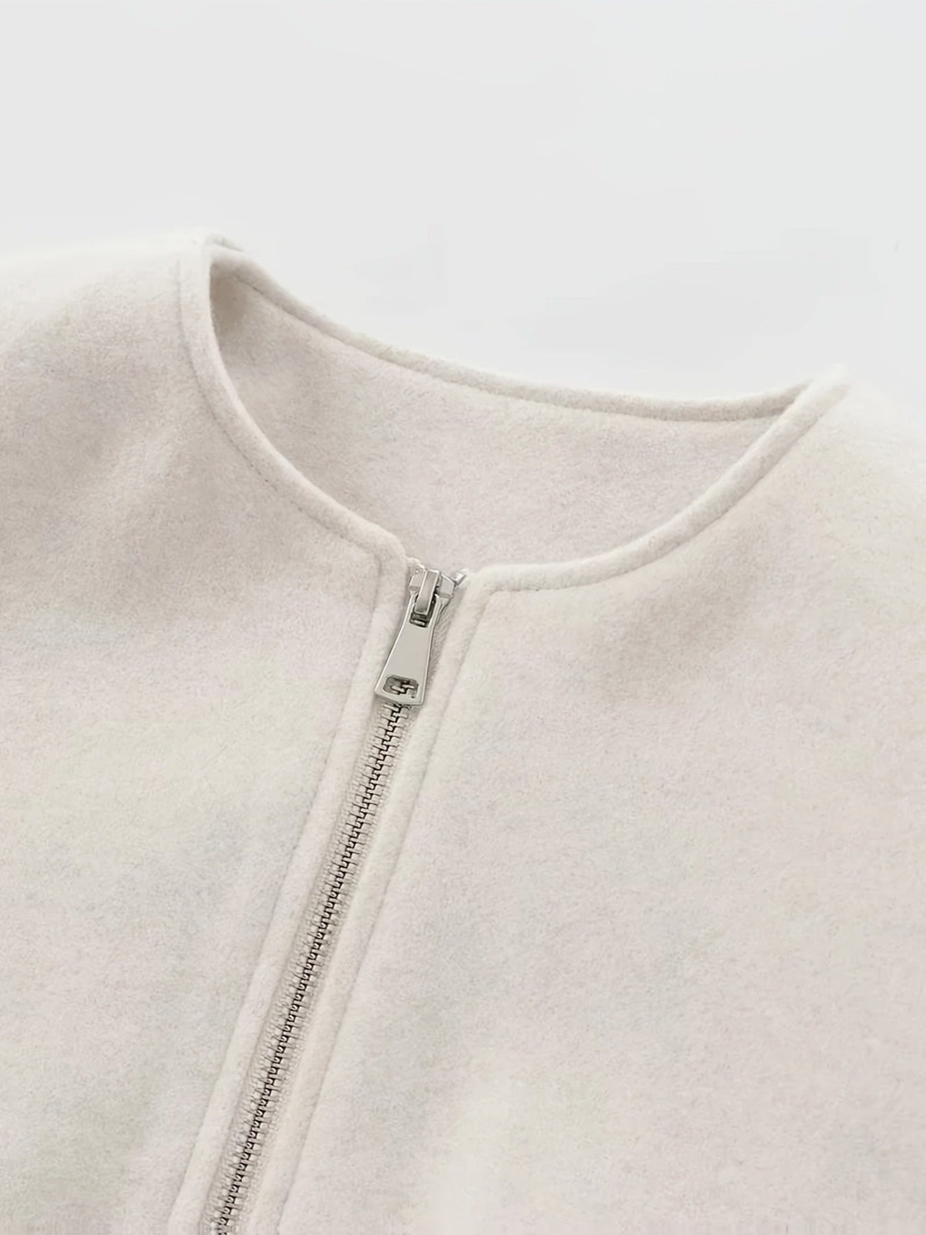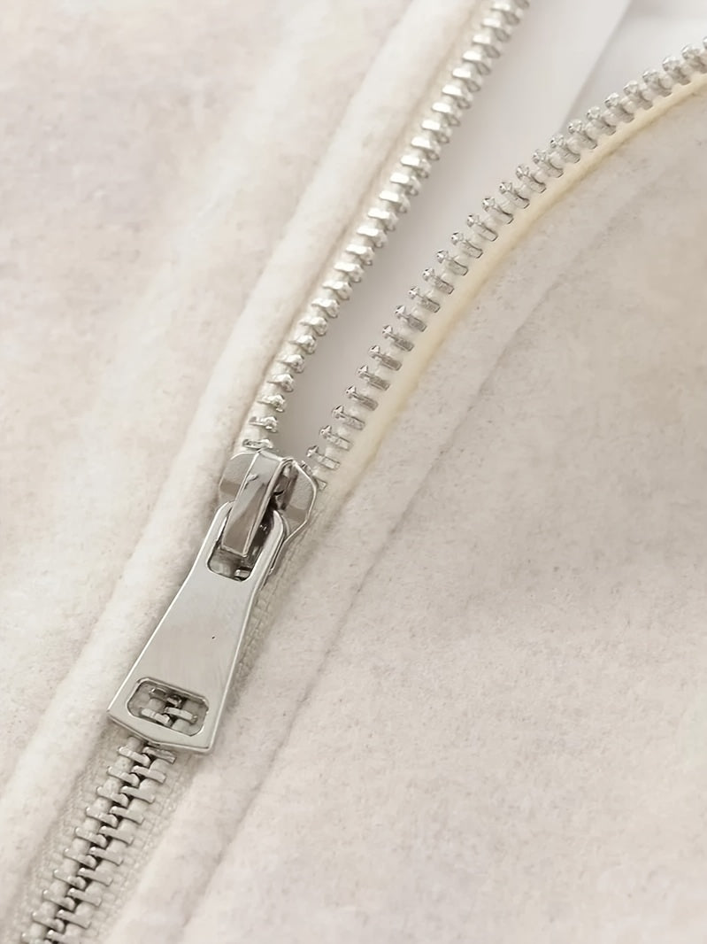 Women'S Elegant Pilot Jacket - Beige Bomber Style Short Coat with Pockets, Zip-Up, Long Sleeves, Loose Fit for Casual & Weekend Wear, Casual Wear Jacket | Bomber Jacket | Polyester Fabric