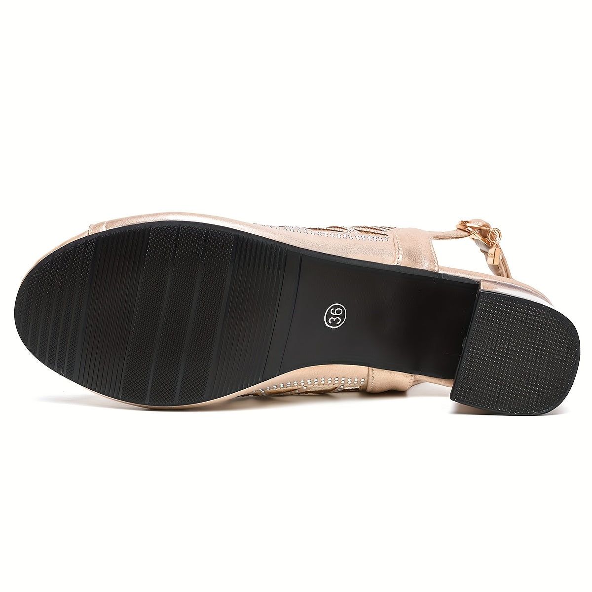 Women's Elegant Rhinestone Peep-Toe Sandals - Black Chunky Heel, Breathable Mesh Upper, Ankle Strap, Summer Fashion Shoes for Parties Events, Event Footwear Secure Buckle Closure