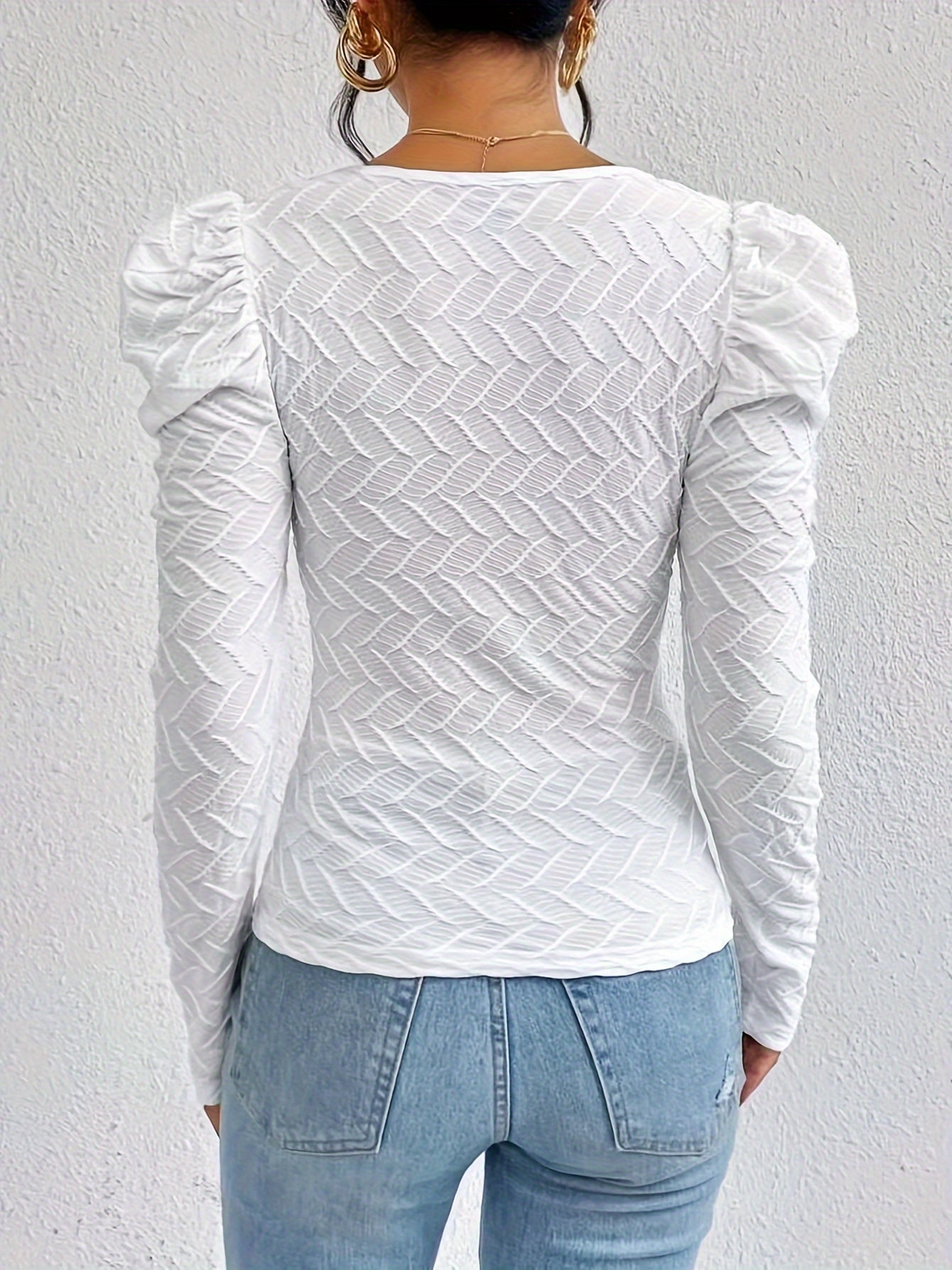 Women'S Elegant Solid Color Square Neck Long Sleeve T-Shirt - Chic Pleated Design, Regular Fit, Versatile for All Seasons