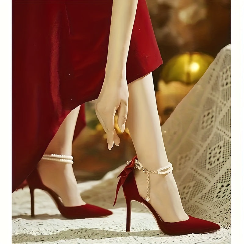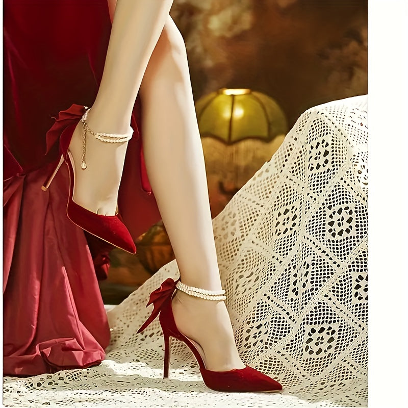 Women's Elegant Summer Evening Dress Shoes with Red Thin Heels, Bow Detail and Comfortable Fit with Insole Pair