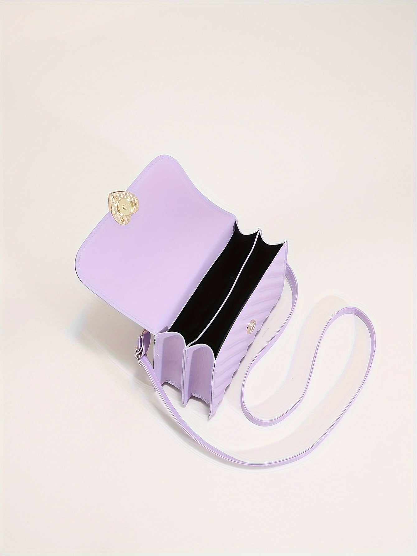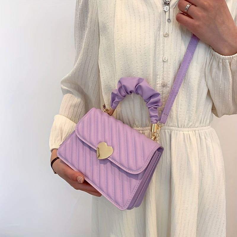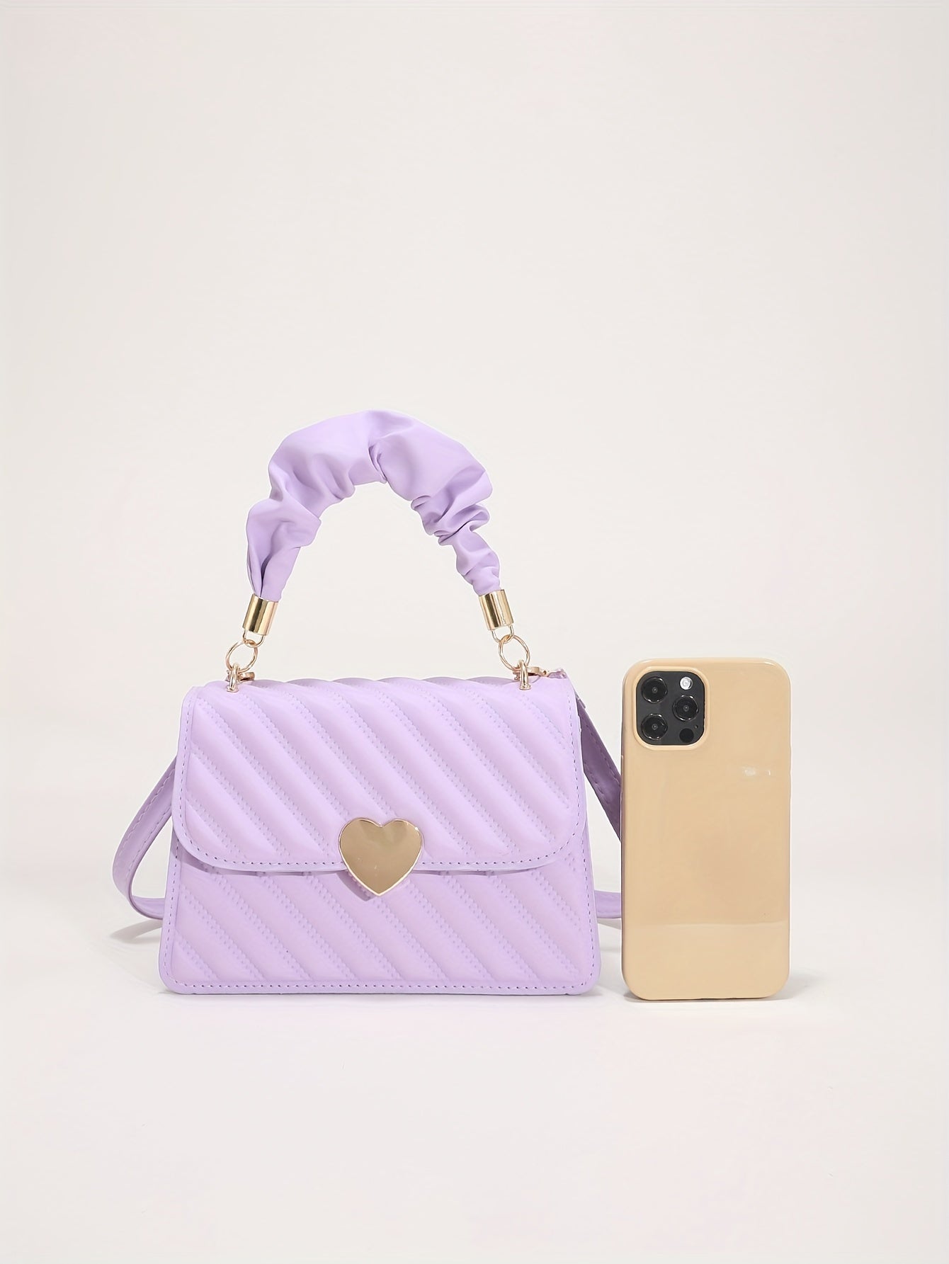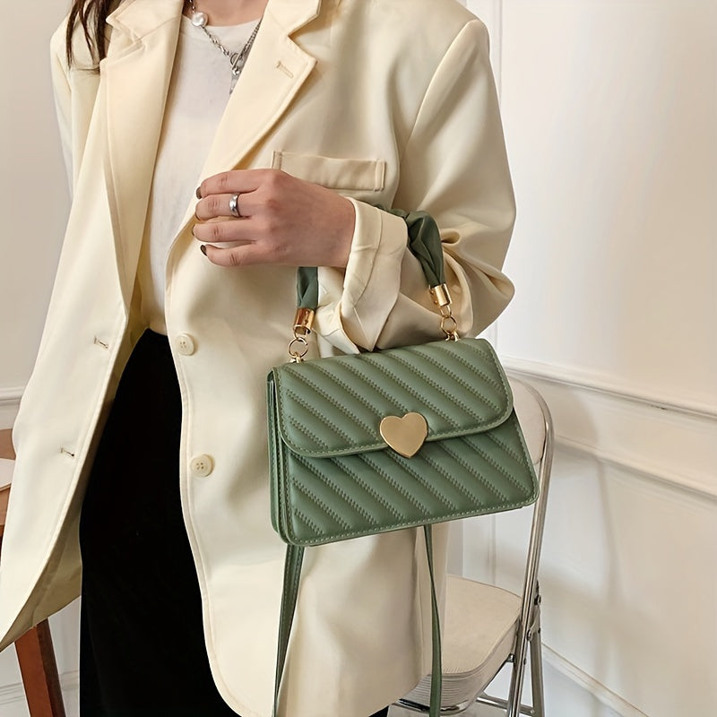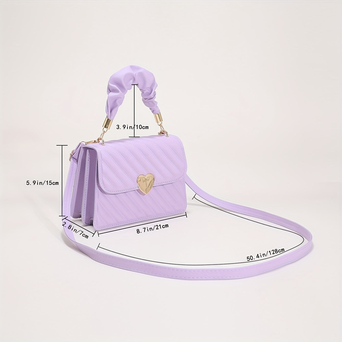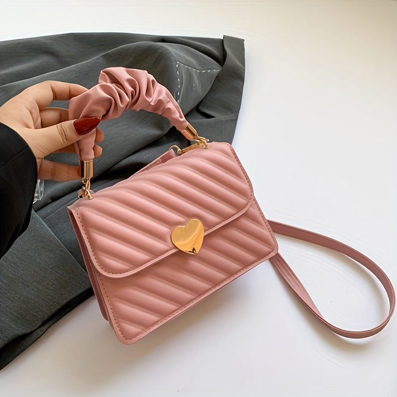 Women'S Fashion Shoulder Bag, Korean Version, Faux Leather, Quilted Solid Color, Heart Accent, Removable Strap, Magnetic Closure, Synthetic Faux Leather Lining, Painted Edges, Versatile Crossbody Purse - Available in Black, R